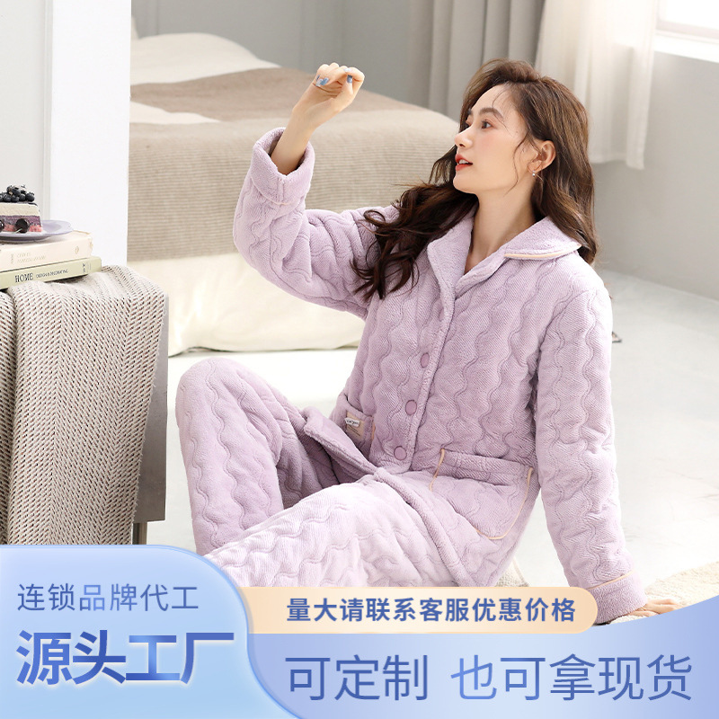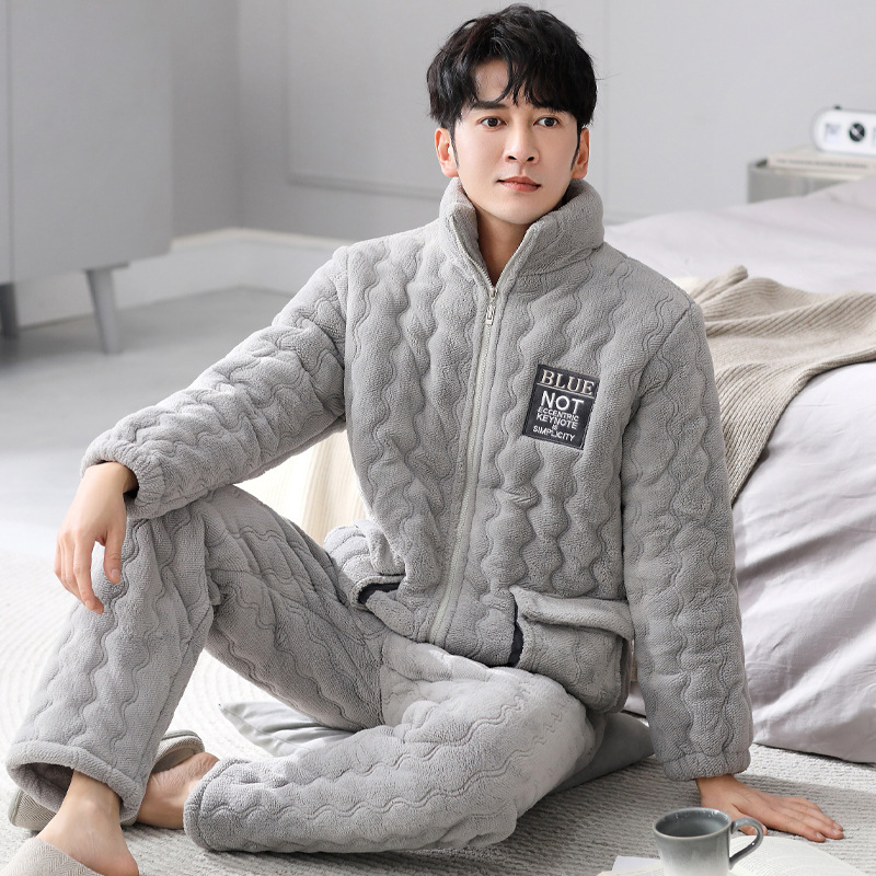 Главная страница > Трехслойные стеганые пижамы для пар, женские зимние теплые фланелевые домашние костюмы на молнии с антистатическим флисом, мужские домашние костюмы