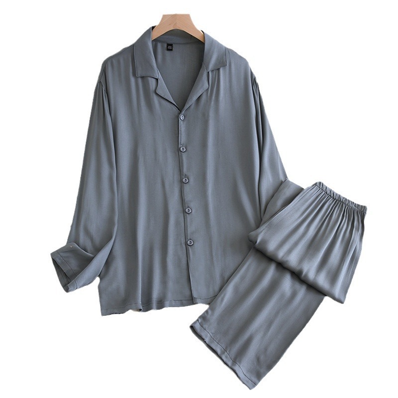Главная страница > Атласный хлопковый Шелковый Пижамный костюм для пар, женские весенне-летние гладкие тонкие мужские брюки с лацканами и длинным рукавом, домашняя одежда