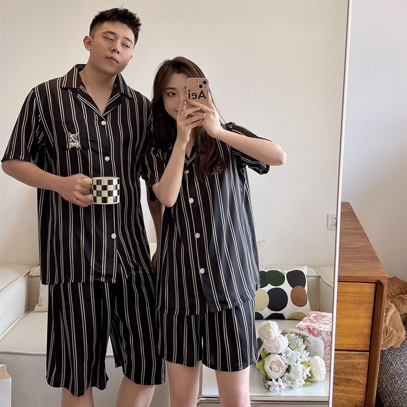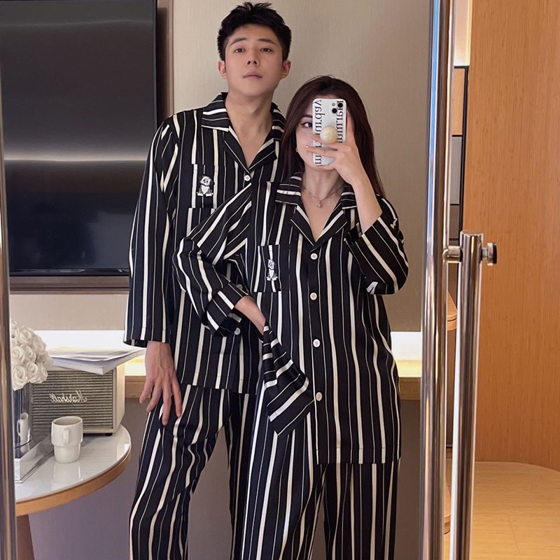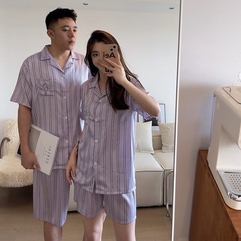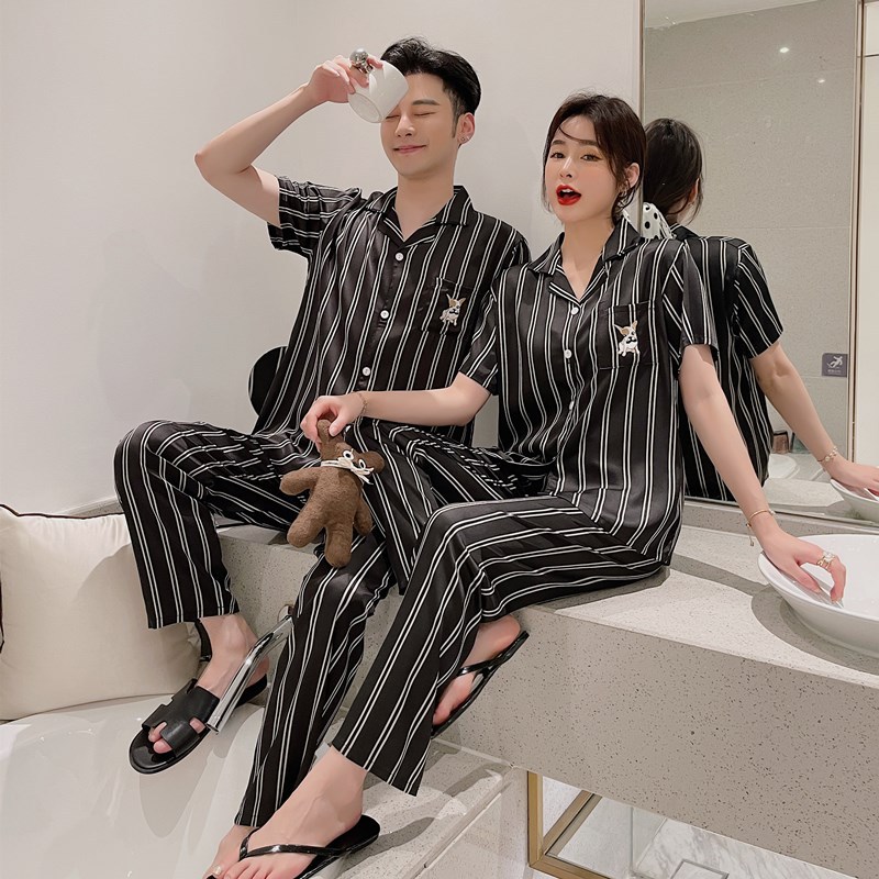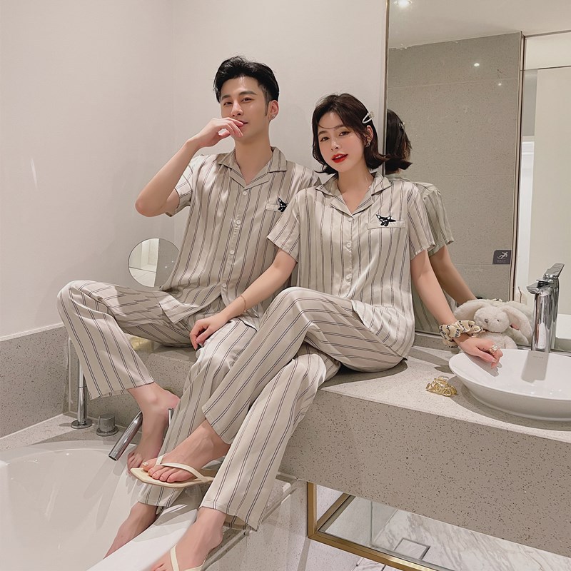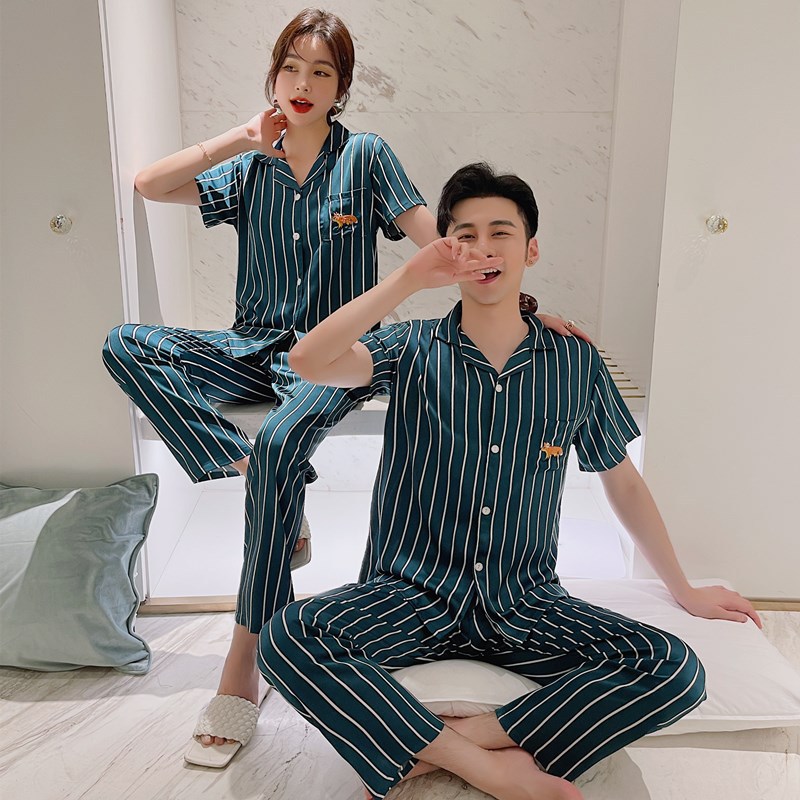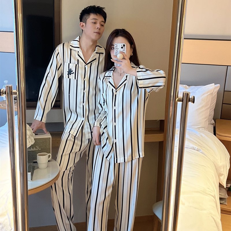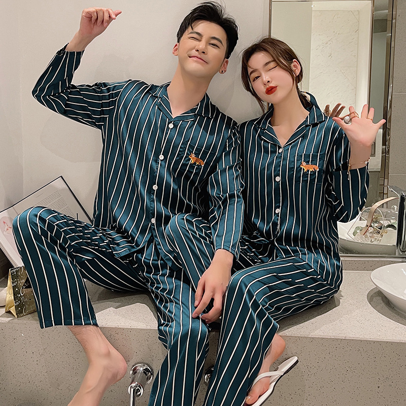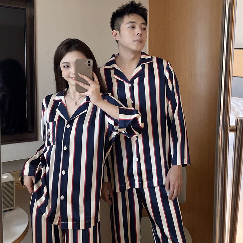 Главная страница > Весна и осень ледяные шелковые брюки с длинными рукавами пижамы дамы весна и лето ледяной шелк в полоску пара мальчиков короткие две домашние одежды