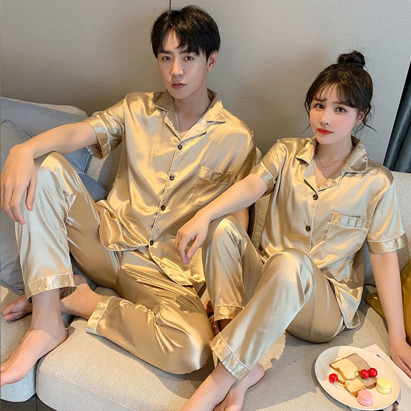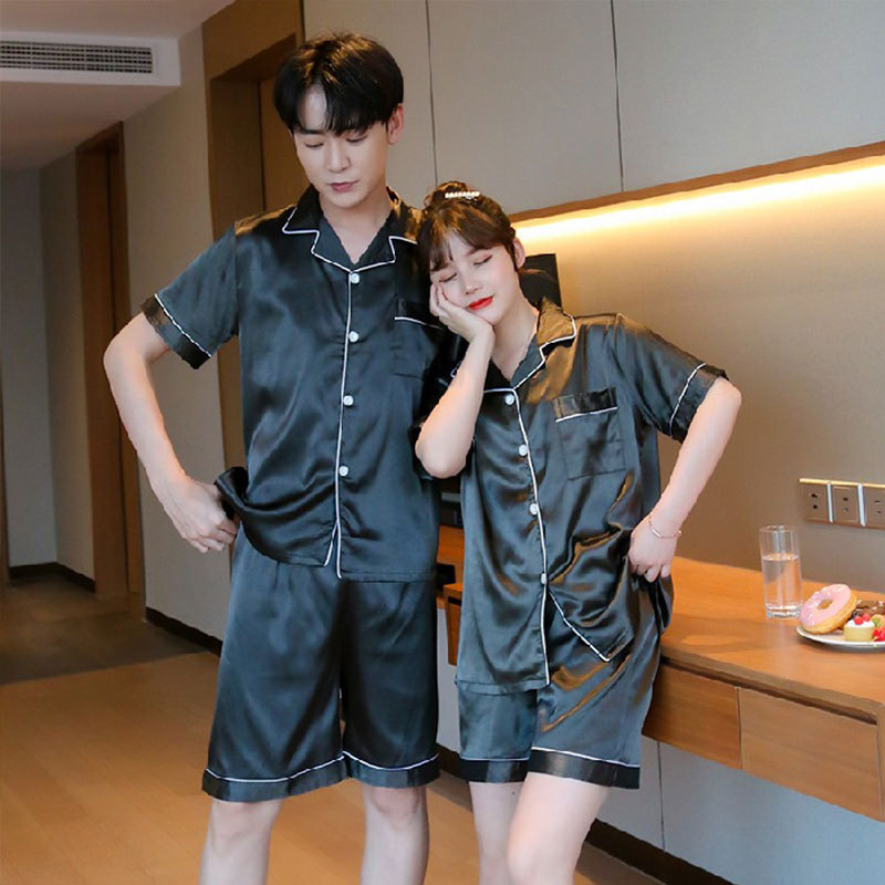 Главная страница > Летний кардиган с лацканами с короткими рукавами для пар пижамы для мужчин и женщин в Корейском стиле ins из ледяного шелка Повседневная Домашняя одежда из искусственного шелка