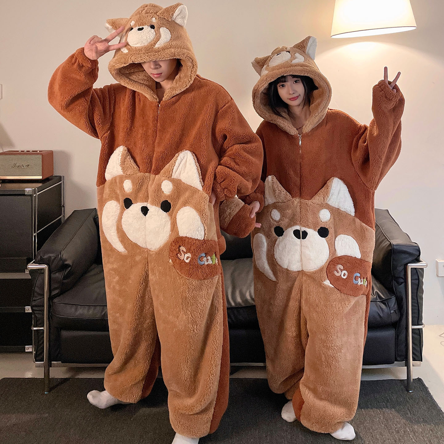 Главная страница > Цельная Пижама для пар, Женская Коралловая флисовая утолщенная флисовая подкладка, осенне-зимняя Мужская Фланелевая Домашняя одежда на молнии