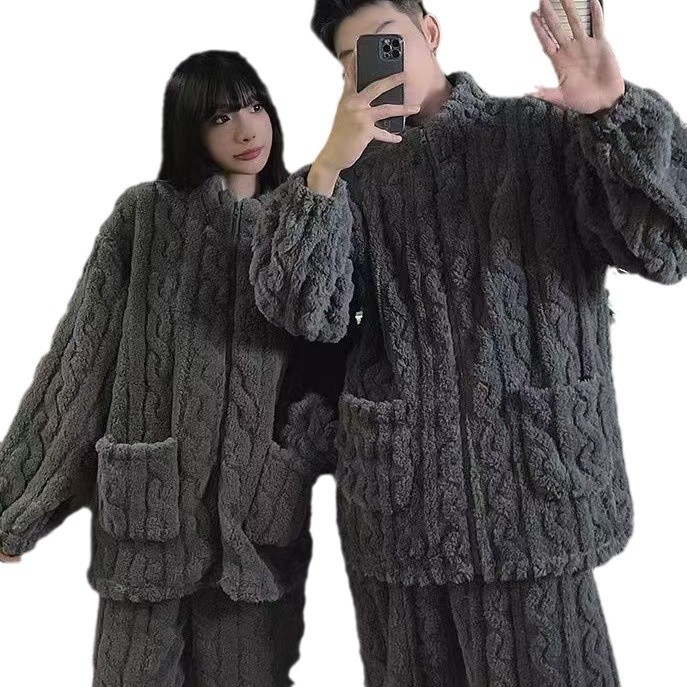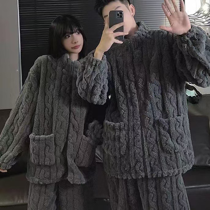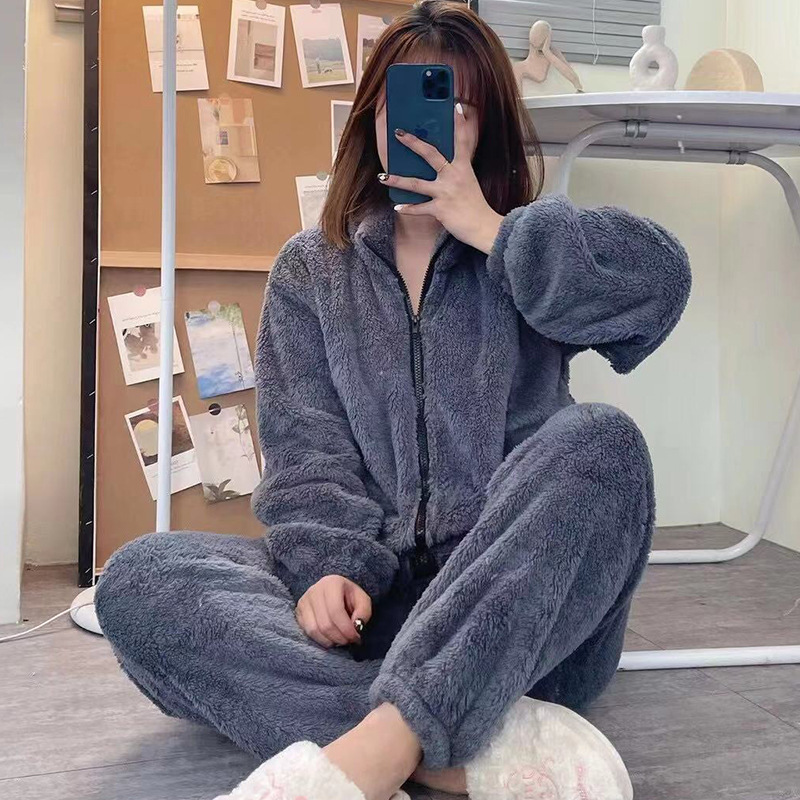 Главная страница > Коралловый бархат Пижама Набор зимняя молния фланель мужская свободная повседневная домашняя одежда для девочек