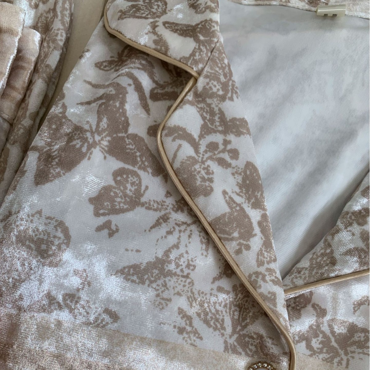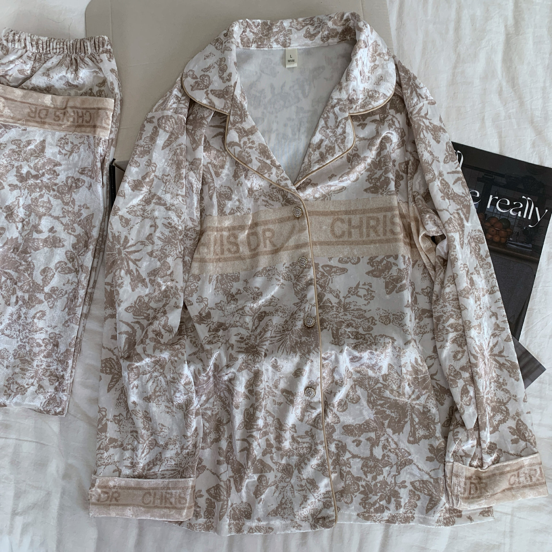 Главная страница > [Золотой бархат] Пара золотых бархатных пижам с длинными рукавами брюки Французский продвинутый сенсорный набор Зимняя бабочка домашняя одежда