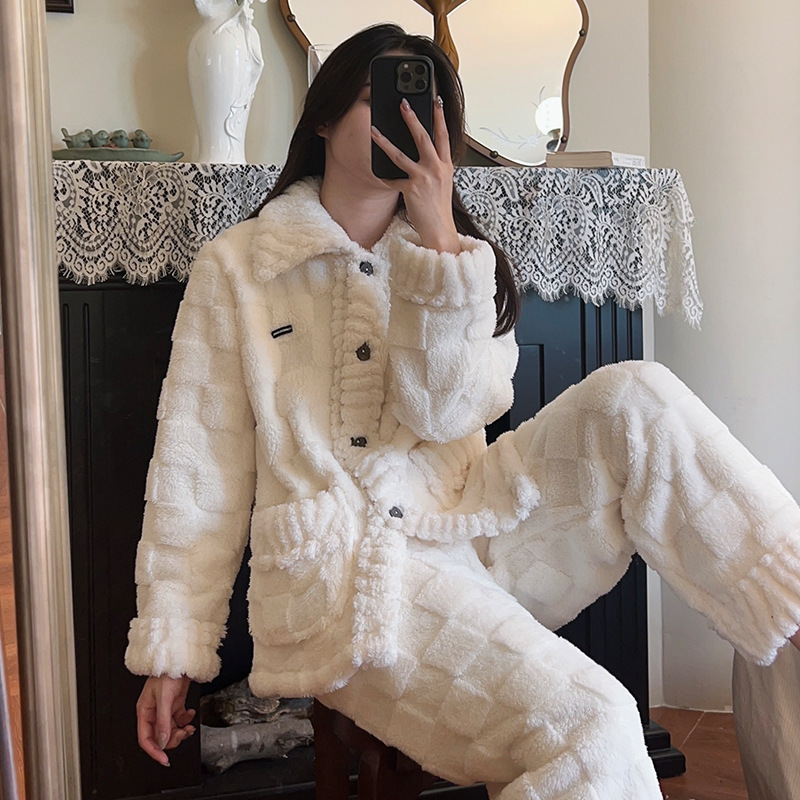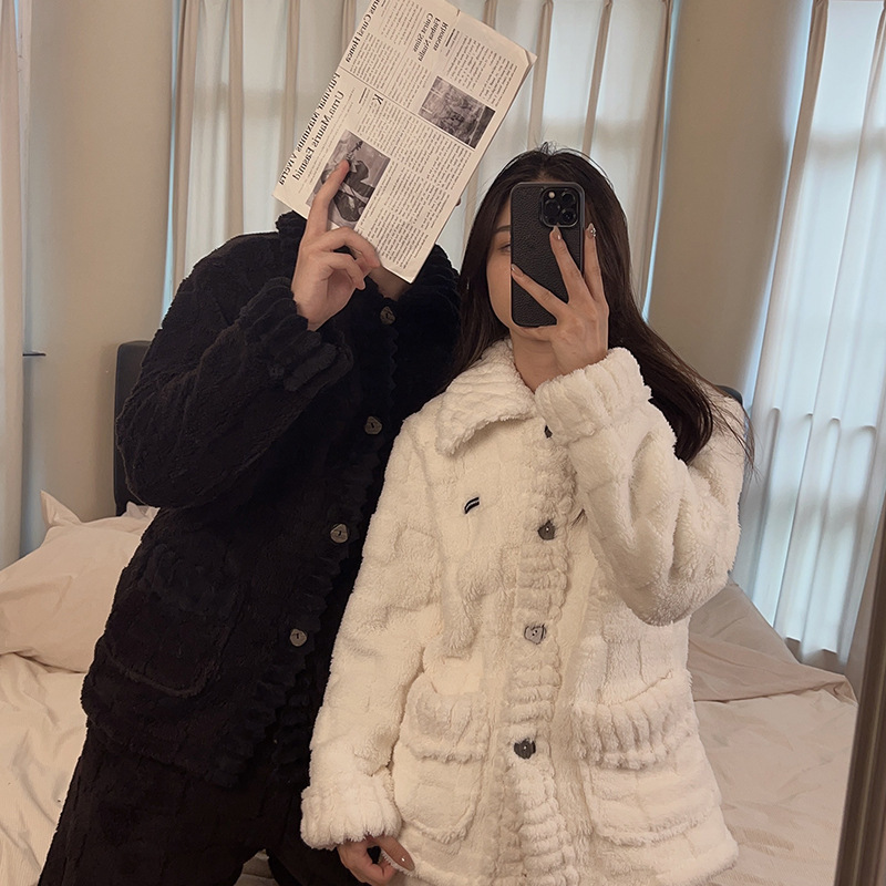 Главная страница > Половина бархатной пары пижамы Осень и зима Новый утолщенный теплый костюм на флисовой подкладке, мужчины и женщины могут носить на улице домашнюю одежду больших размеров