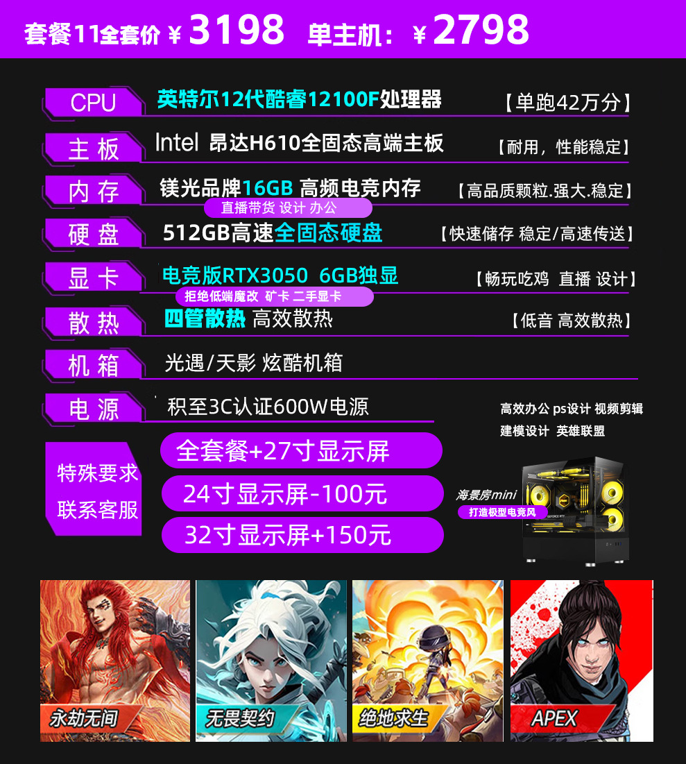 Главная страница > 12-ядерный настольный компьютер с высокой конфигурацией RTX3060 съедобная курица сборка машина LOL дизайнер полный набор машин