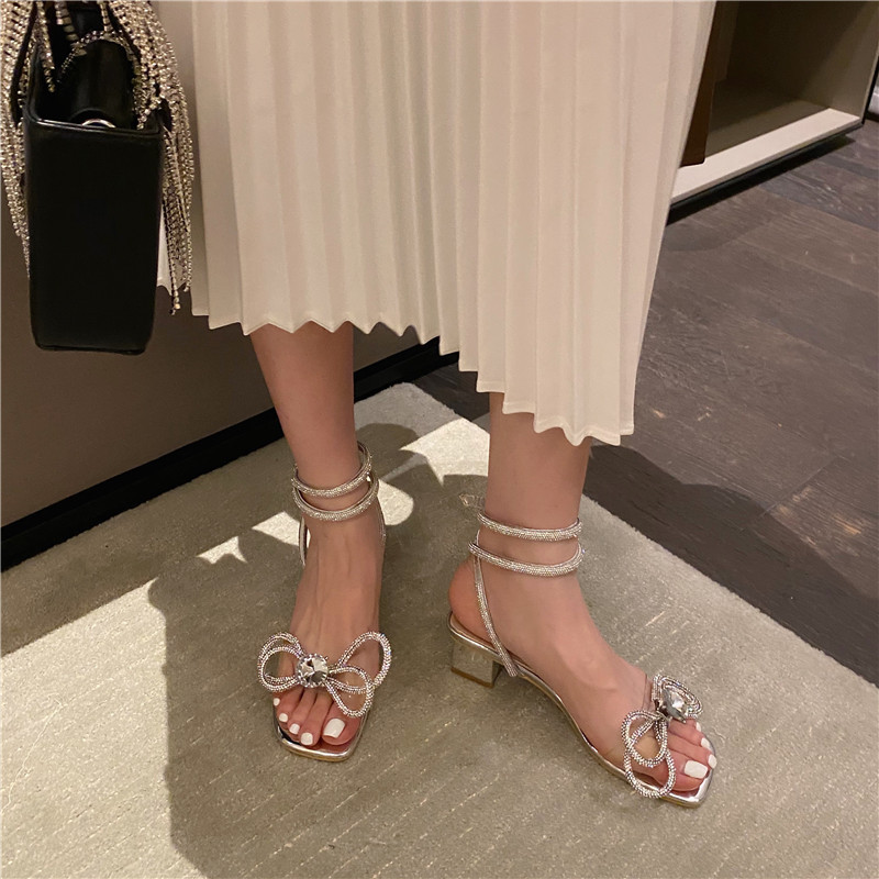 Главная страница > Босоножки со стразами женские лето 2023 новые туфли на массивном каблуке с квадратным носком и ремешком на каблуке с бантом на высоком каблуке в сказочном стиле на шпильке
