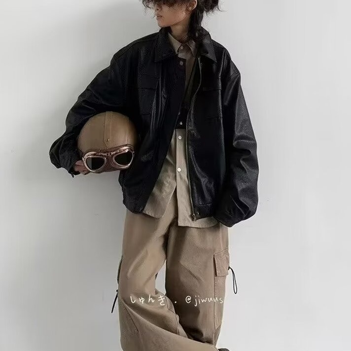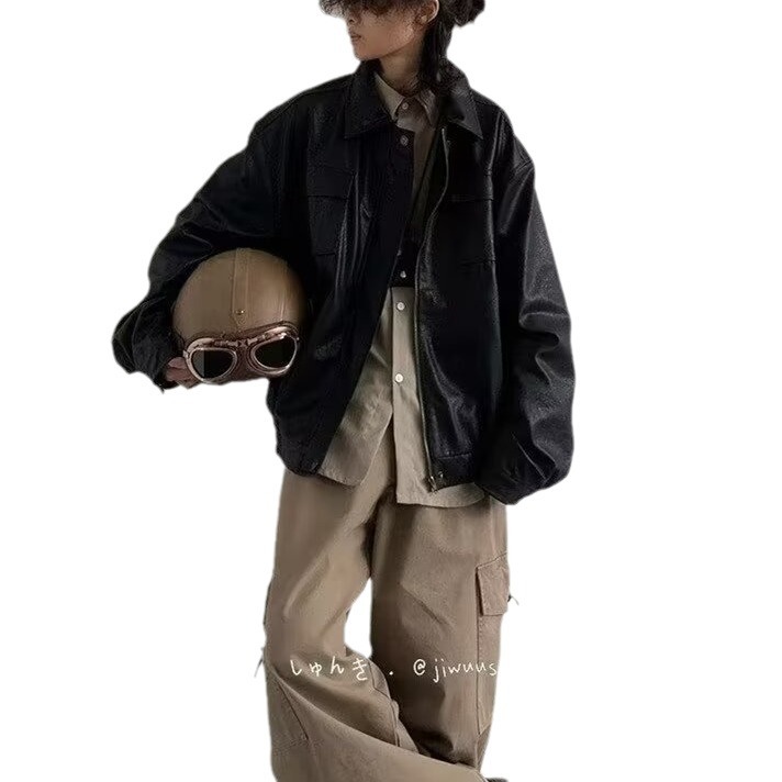 Главная страница > 2024 Новая Осенняя кожаная куртка, Мужская свободная черная Высококачественная мотоциклетная одежда, модная красивая кожаная куртка из искусственной кожи для мальчиков