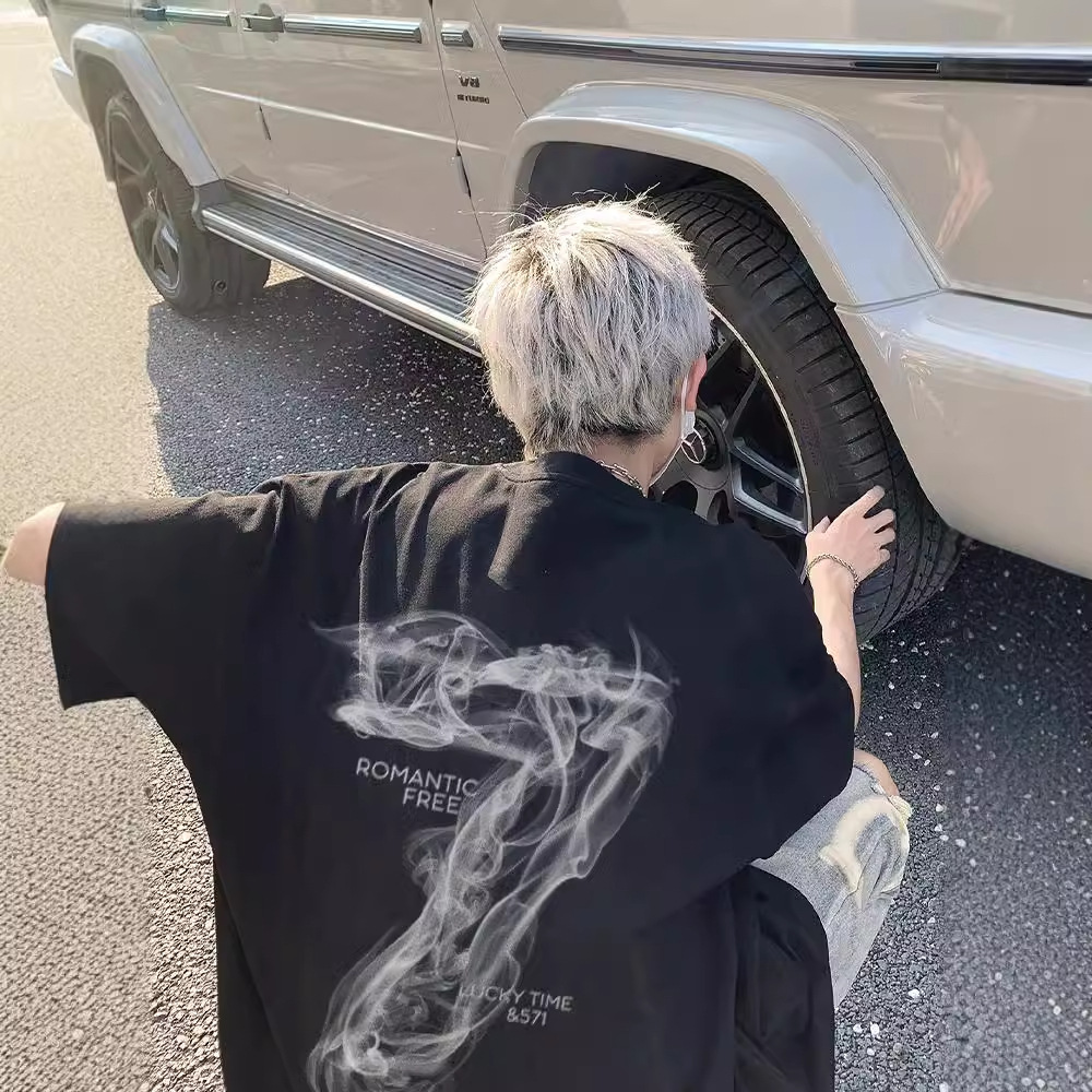 Главная страница > Мужская летняя футболка оверсайз из плотного чистого хлопка в американском стиле, модная, свободная, с коротким рукавом, оптом