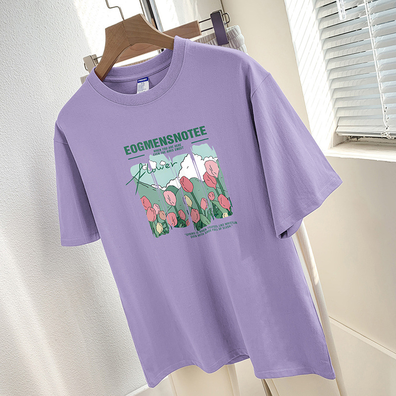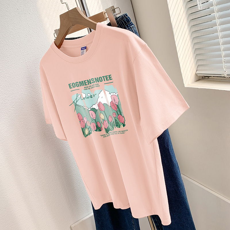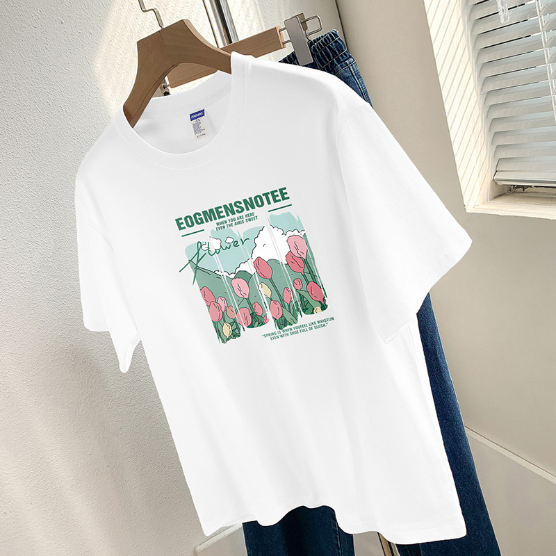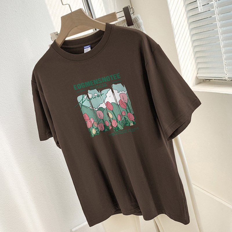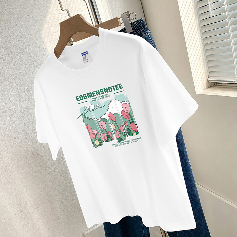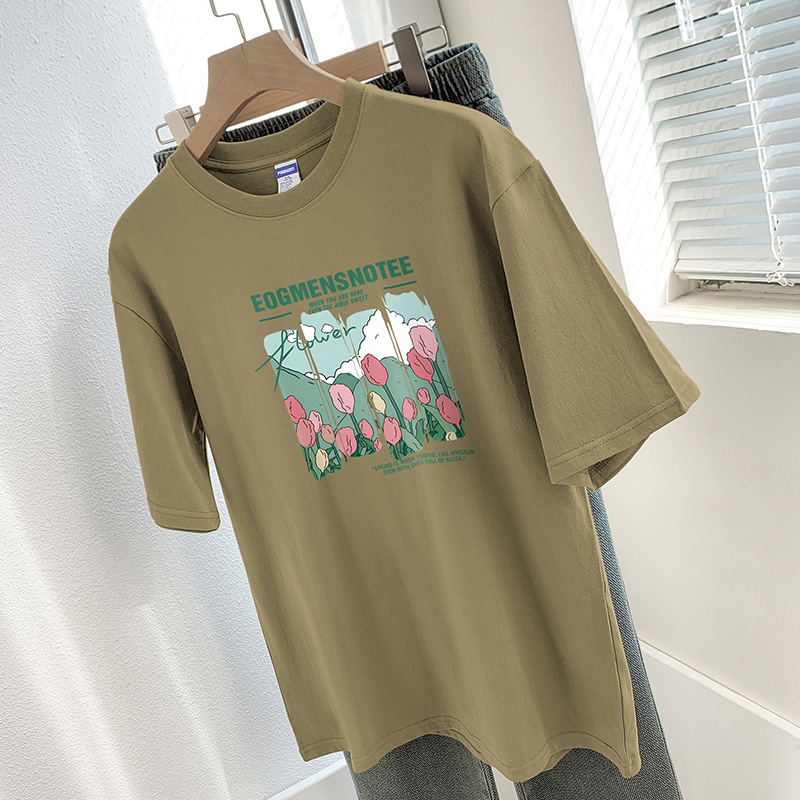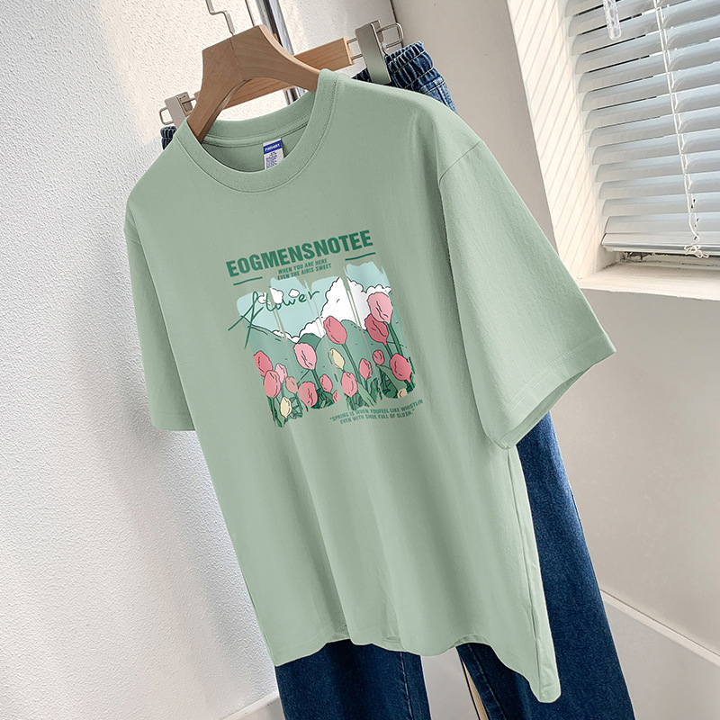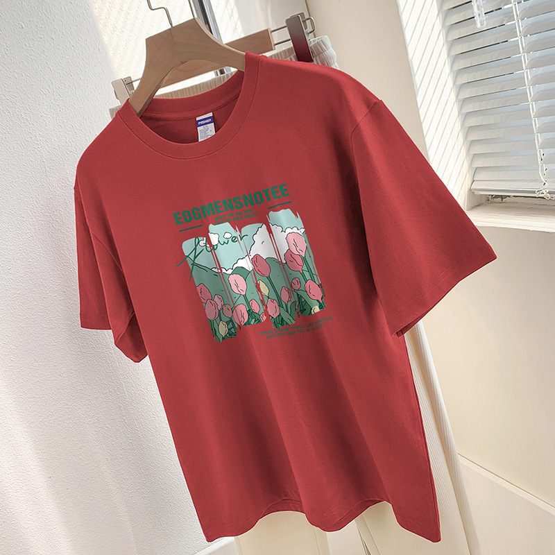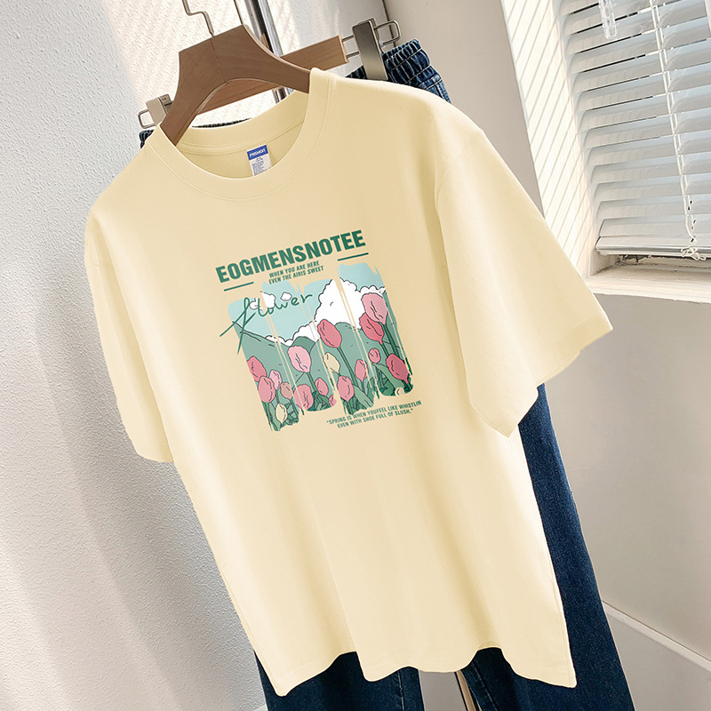 Главная страница > 260g тяжелая хлопчатобумажная футболка с короткими рукавами высокого уровня с принтом нишевый шикарный топ Летняя свободная футболка с половиной рукава