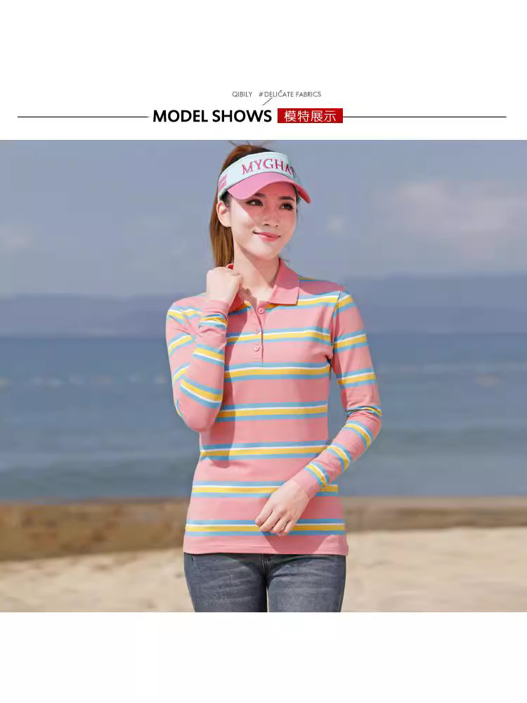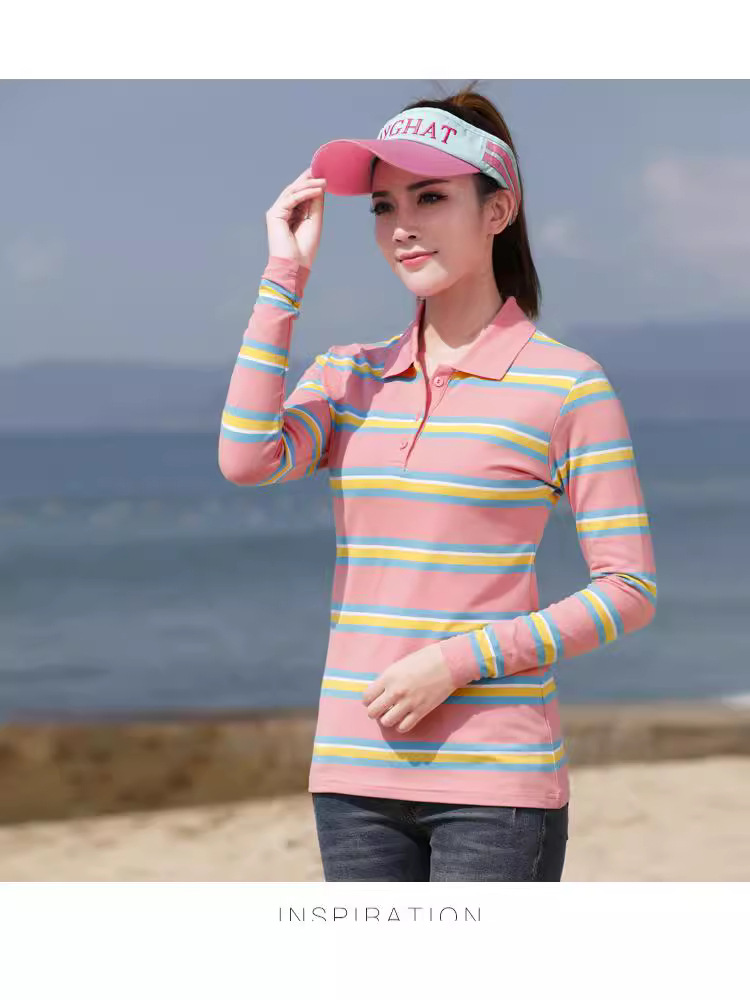 Главная страница > Осенний новый стиль с длинными рукавами розовая полосатая женская футболка стройная спортивная повседневная отворот рубашка POLO весенний белый топ