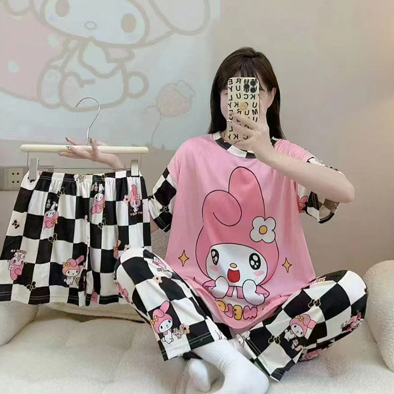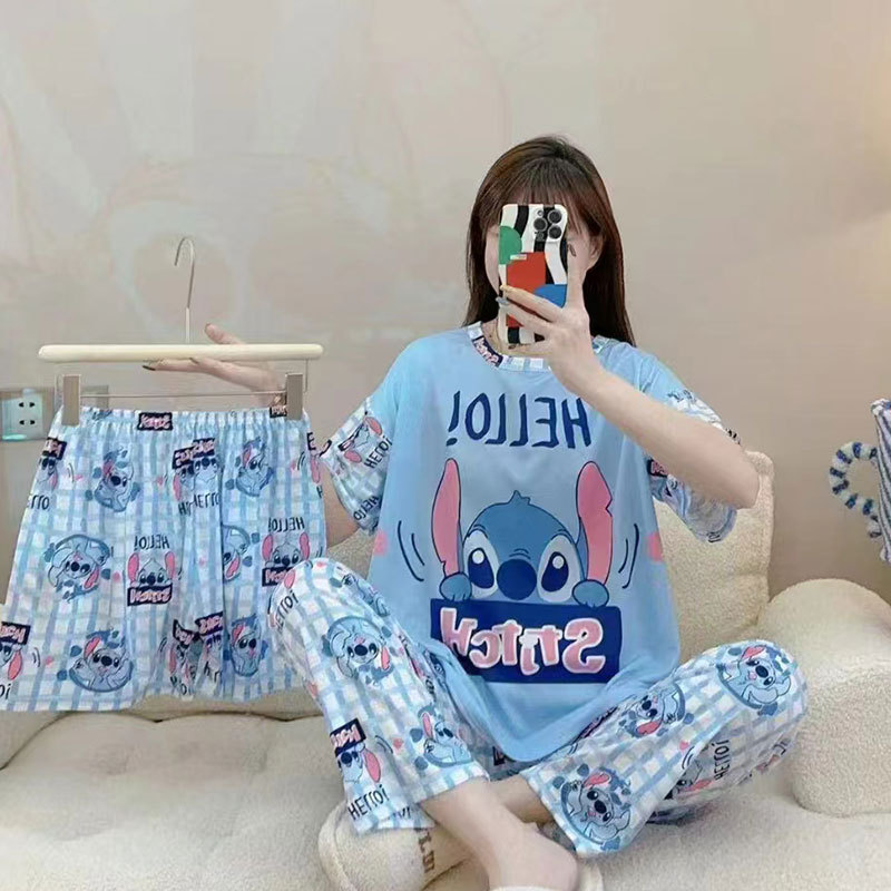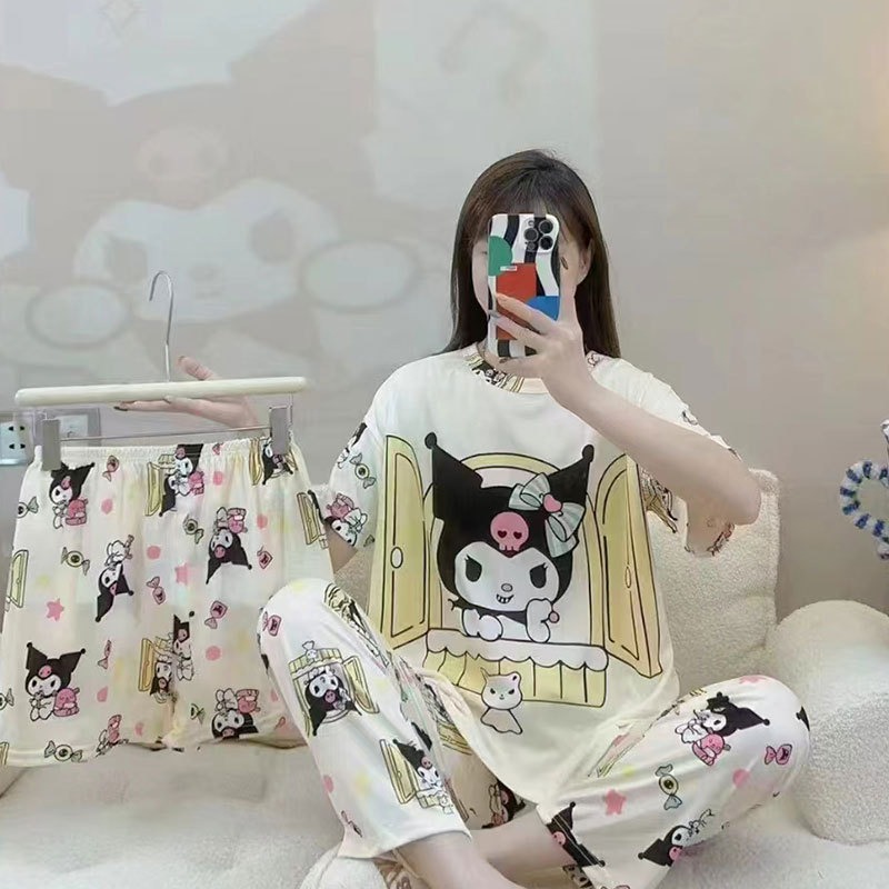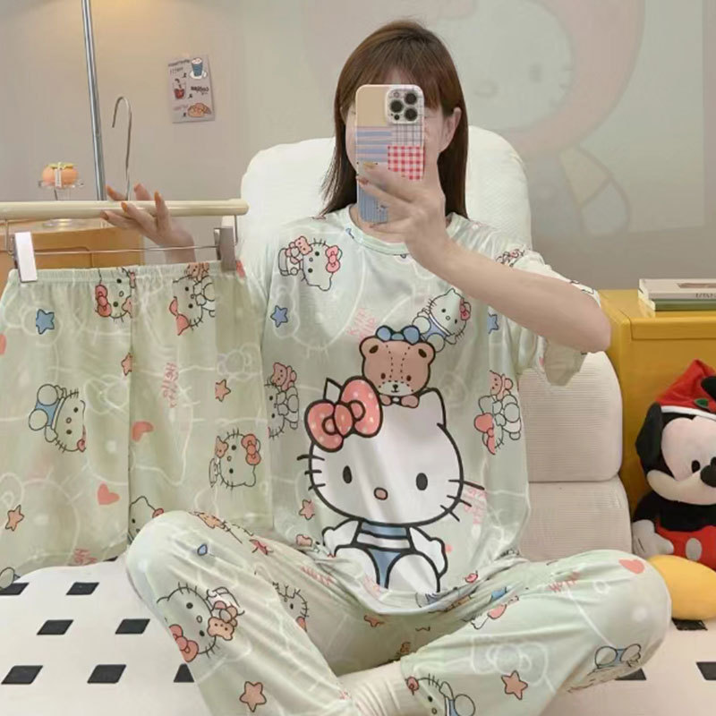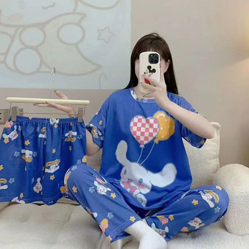 Главная страница > Юго-Восточная Азия внешнеторговая фабрика оптом мультфильм летняя пижама женские шорты с короткими рукавами брюки три комплекта дома костюм женский
