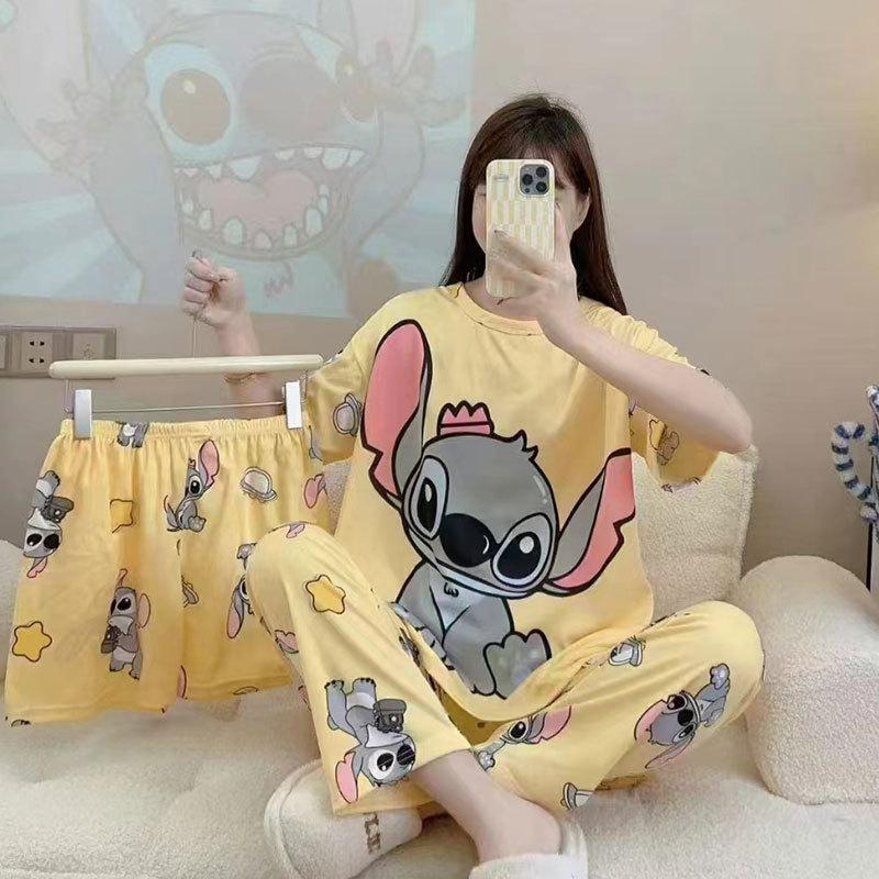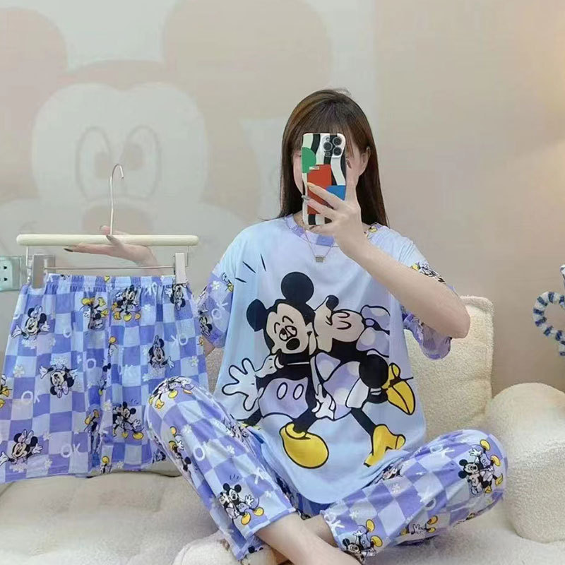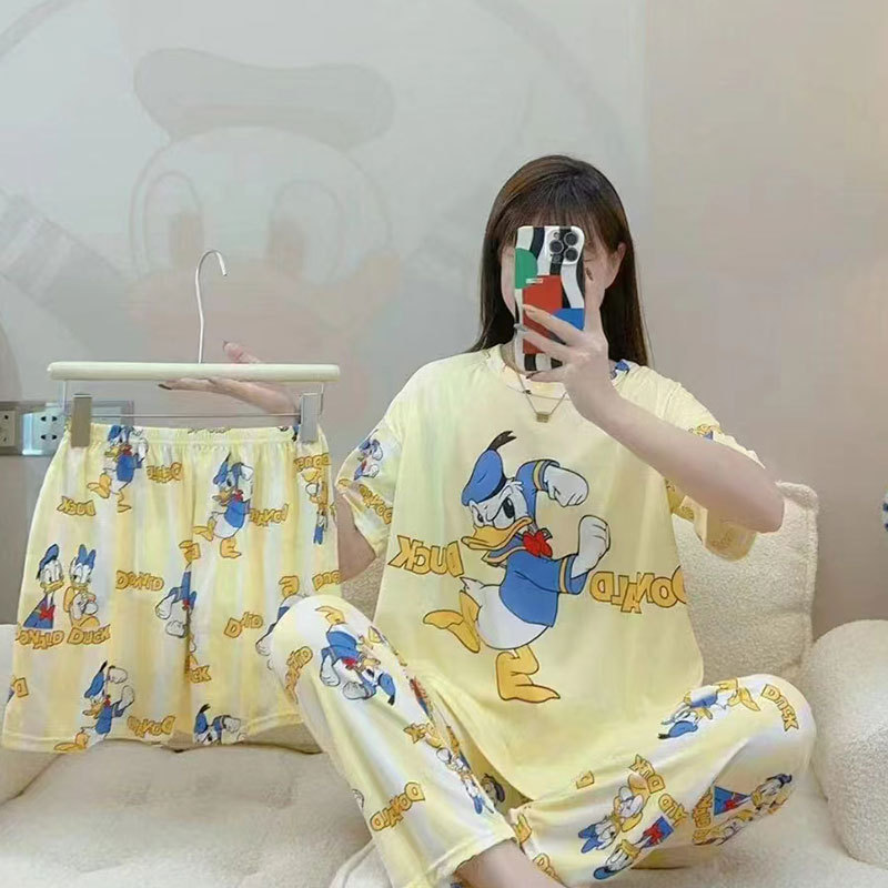 Юго-Восточная Азия внешнеторговая фабрика оптом мультфильм летняя пижама женские шорты с короткими рукавами брюки три комплекта дома костюм женский