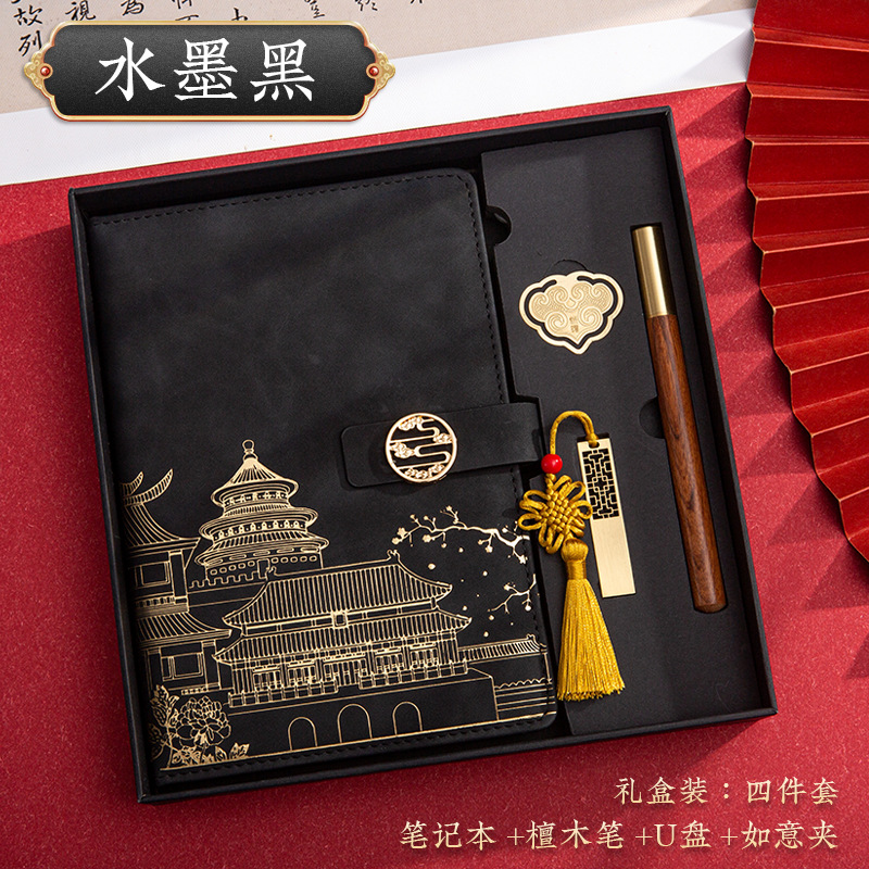 Набор из четырех предметов чернил черного цвета (книга + ручка + U-диск + зажим Ruyi)