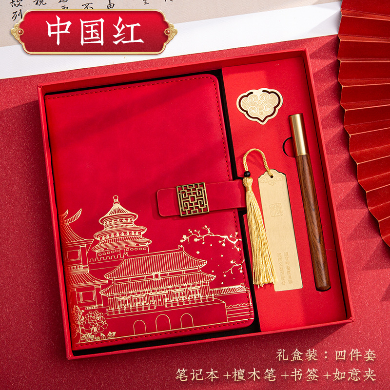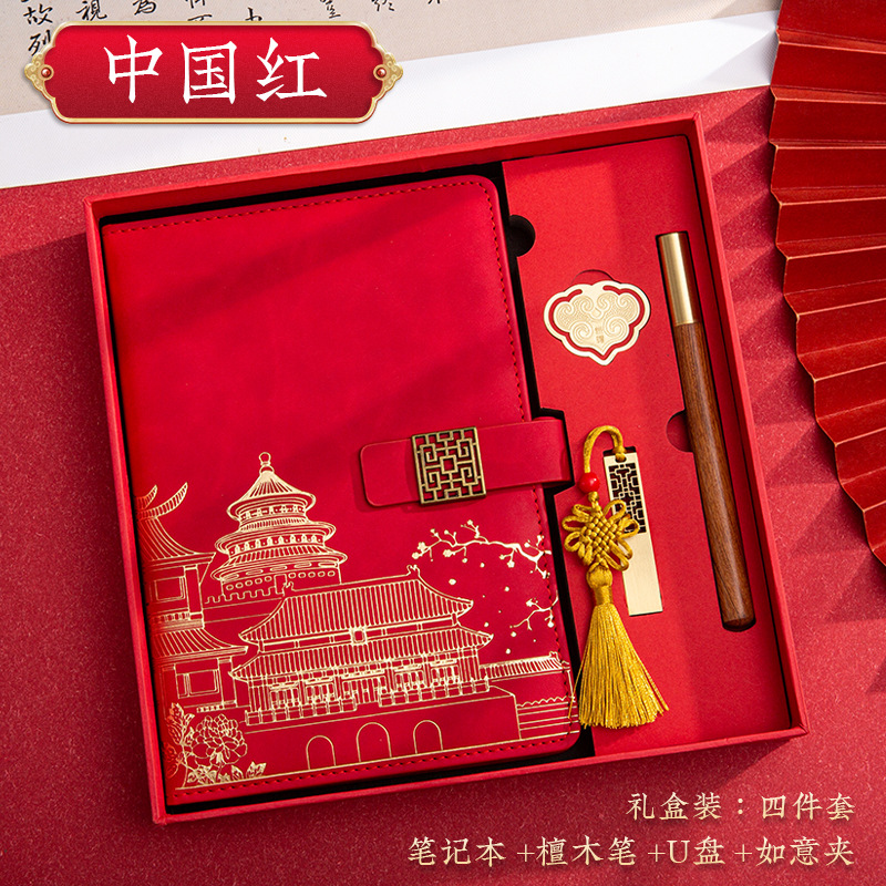 Китайский красный набор из четырех предметов (книга + ручка + U-диск + зажим Ruyi)