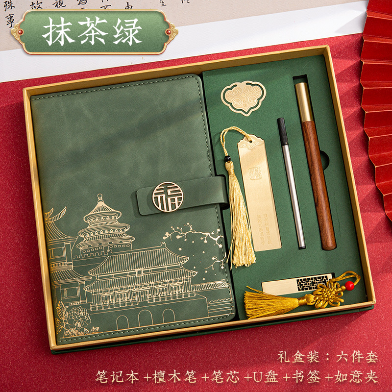 Элегантный зеленый набор из четырех предметов (книга + ручка + U-диск + зажим Ruyi)
