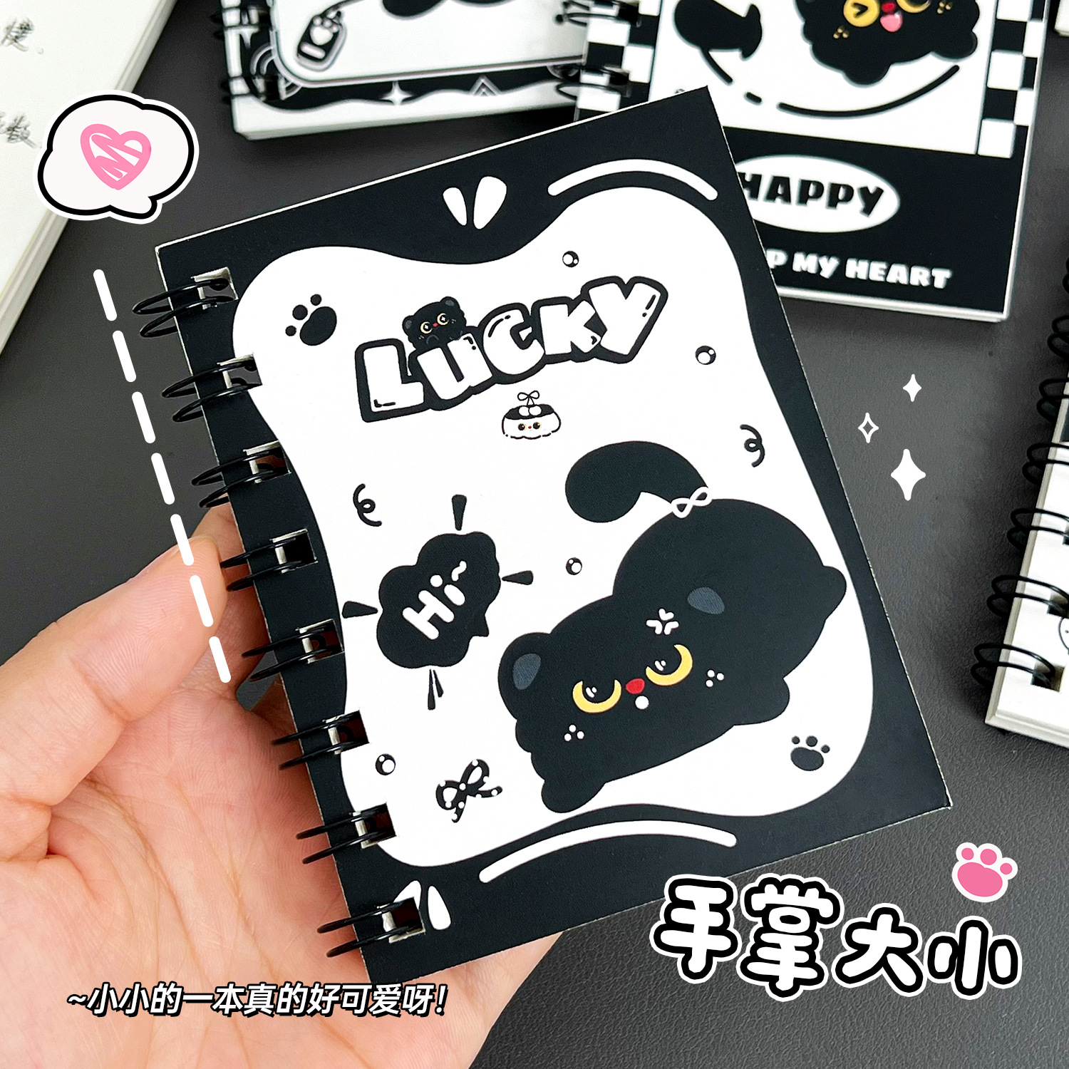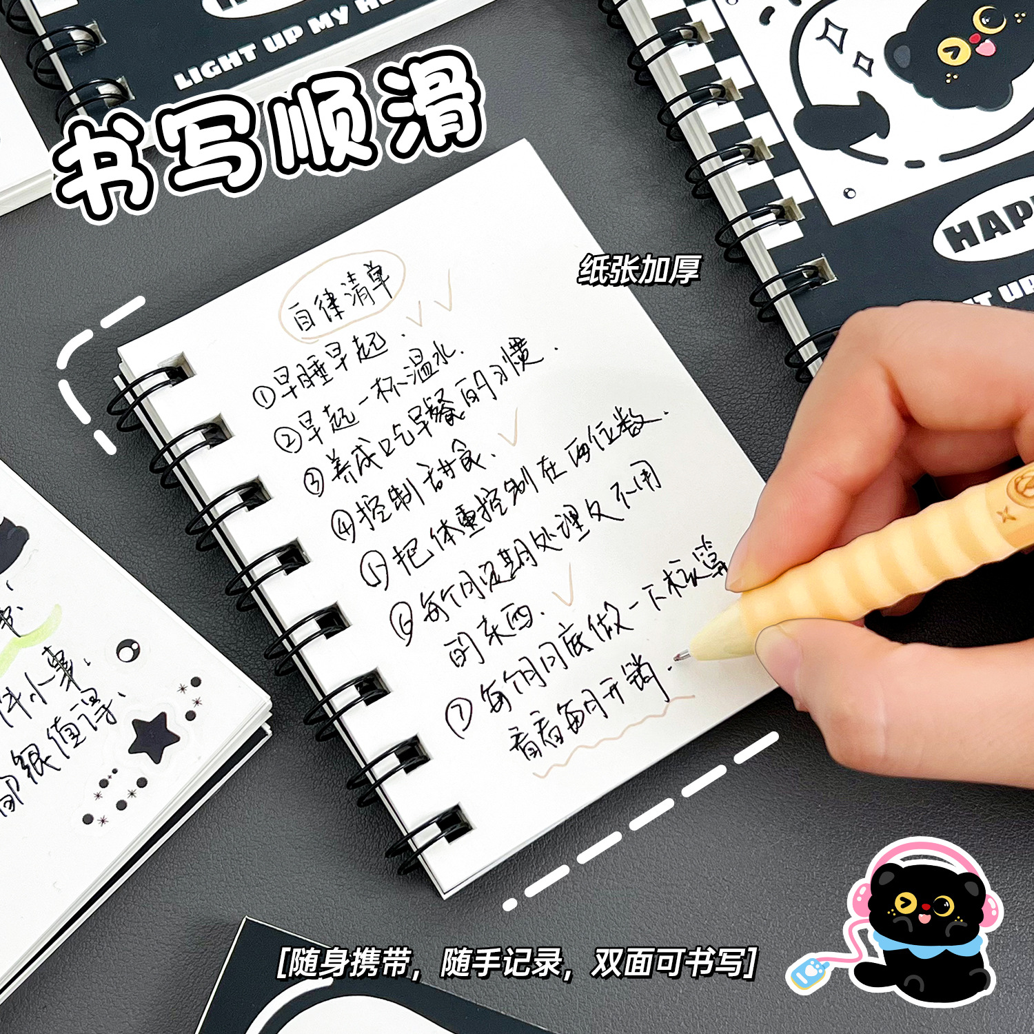 Главная страница > Черный блокнот с катушкой в стиле котенка, портативный блокнот, милый студенческий блокнот, мини-книга слов, книга неправильных вопросов