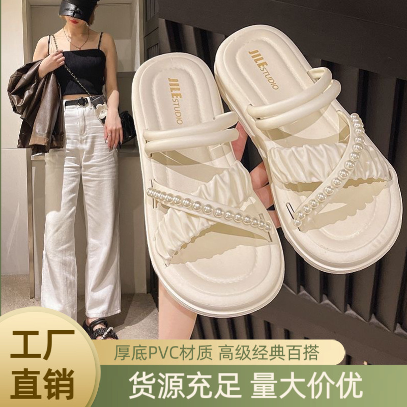 Главная страница > Французские сандалии с высокой подошвой для женщин, новинка 2023 года, верхняя одежда, нескользящие универсальные женские тапочки на толстой подошве со стразами и жемчугом, летние