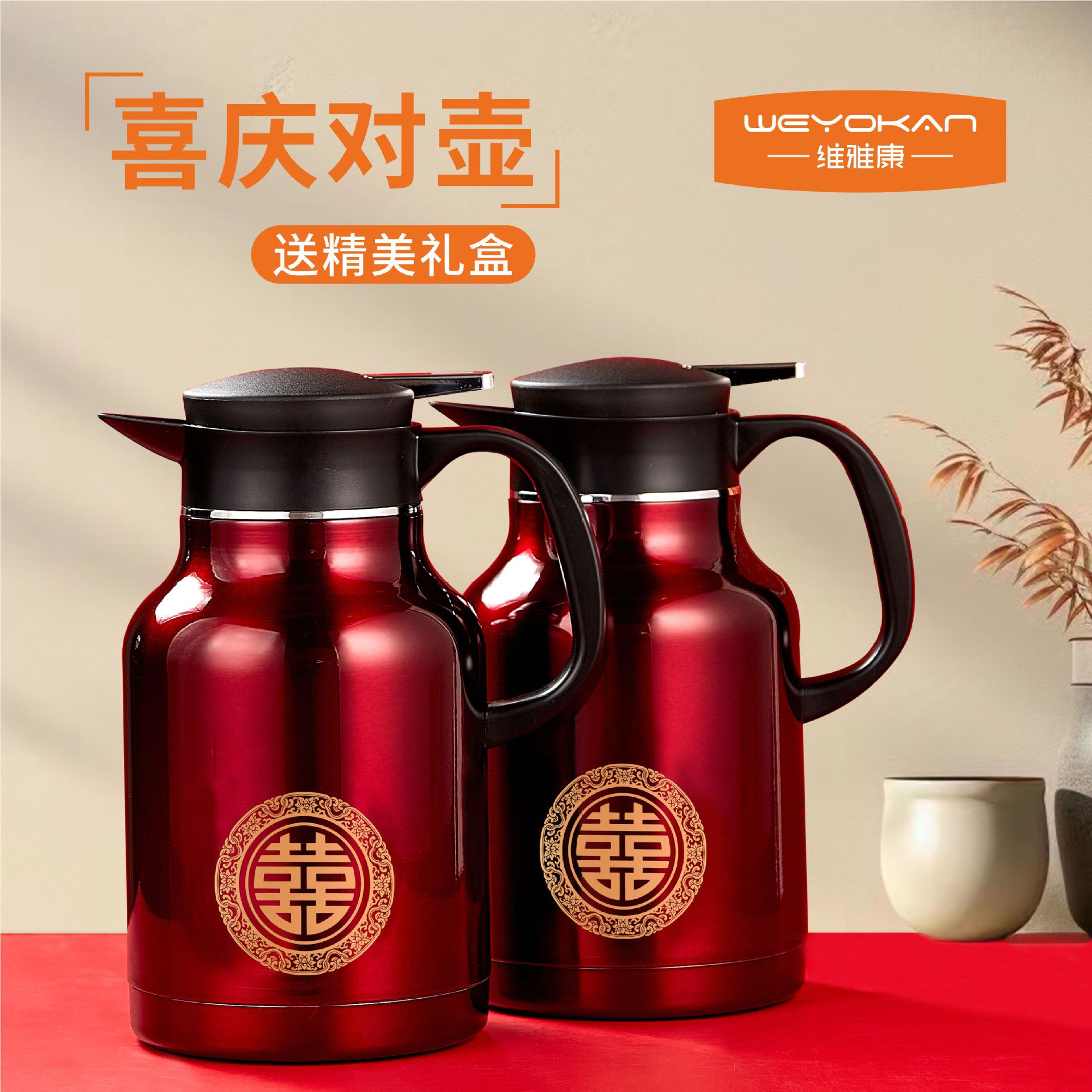 Главная страница > Пара праздничных вакуумных термосов из нержавеющей стали 304 бытовой Европейский кофейник Свадебный оптовый костюм