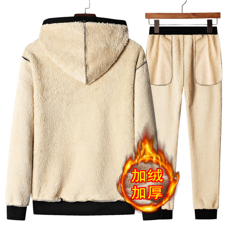 Главная страница > Зимний утолщенный спортивный костюм на флисовой подкладке для отдыха, Мужской легкий свитер из овечьей шерсти с капюшоном, брюки, комплект из двух предметов