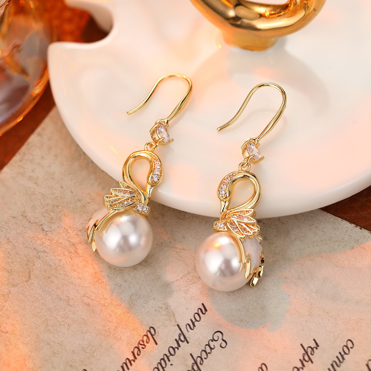 Женские серьги, высококачественные крючки для ушей с лебединым жемчугом, элегантные французские серьги, доступная роскошь, универсальные женские серьги