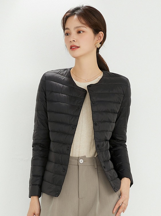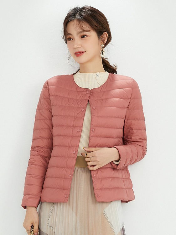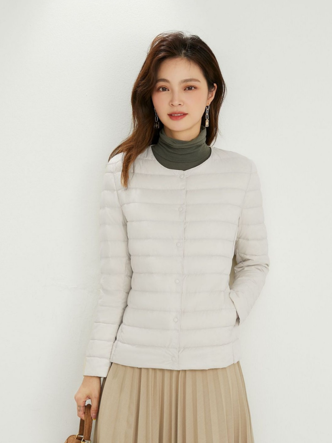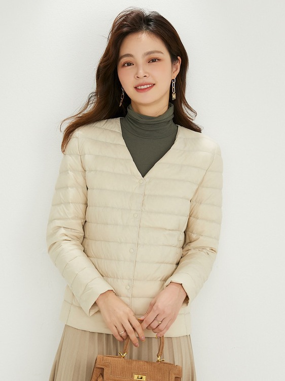 Главная страница > Легкий женский пуховик на осень и зиму 2025 года, новый, с круглым и V-образным вырезом, длинными рукавами, без воротника, из белого утиного пуха 90%