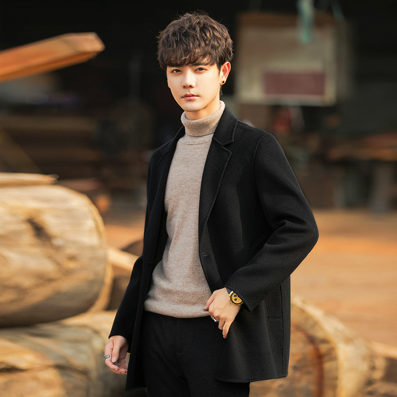 Главная страница > 22B09 двустороннее шерстяное пальто средней длины, костюм из некашемира в Корейском стиле, шерстяной зимний утолщенный Тренч, мужская одежда