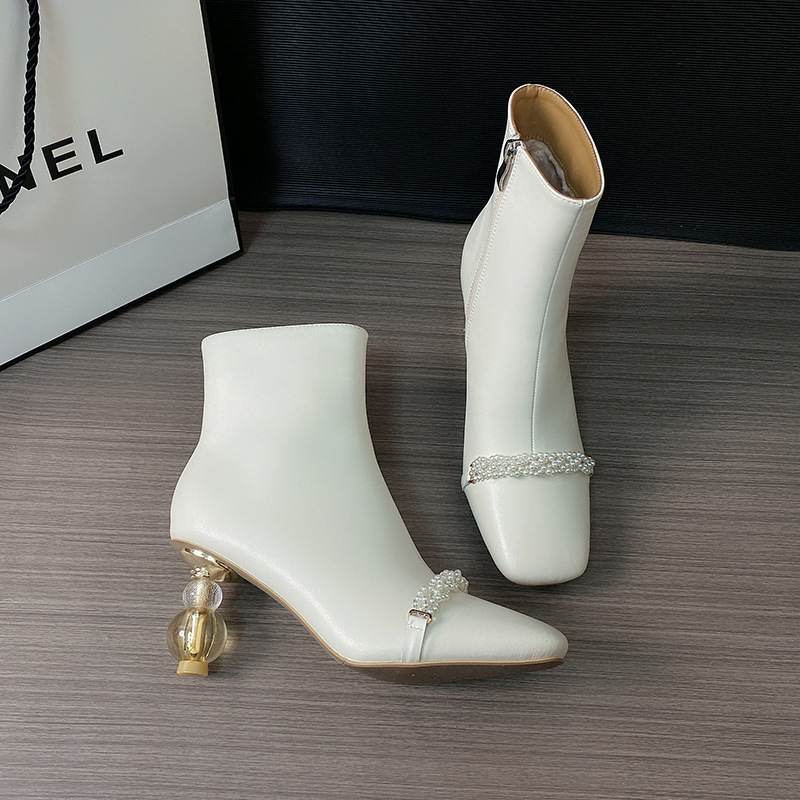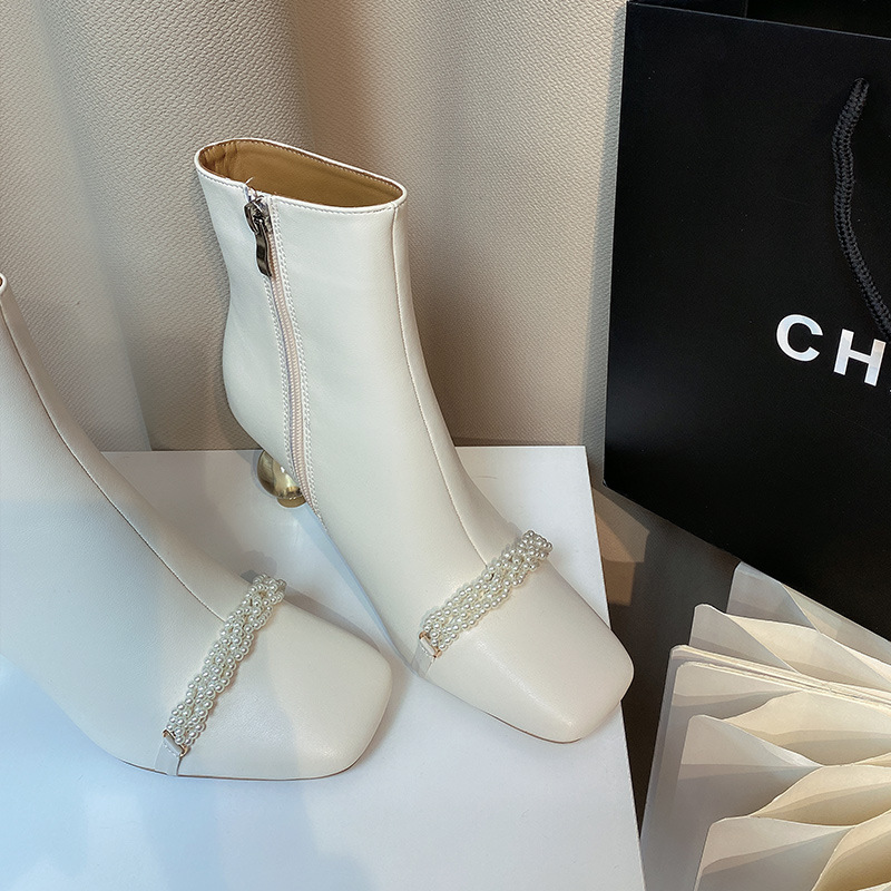 Главная страница > Ботильоны из натуральной кожи во французском стиле с жемчугом, эластичные, на высоком квадратном каблуке, укороченные, на массивном каблуке