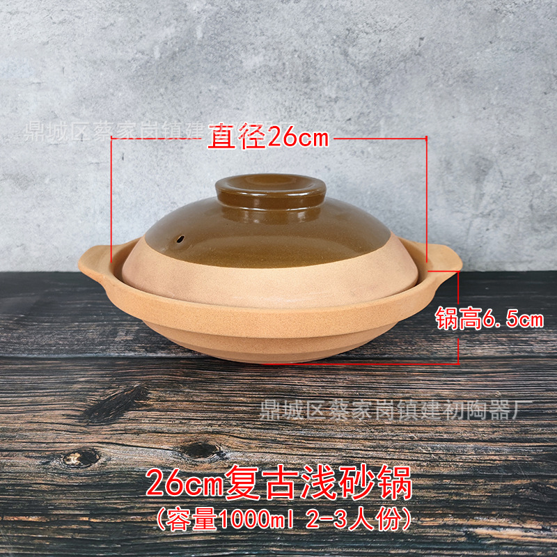 Главная страница > Традиционная старомодная мелкая кастрюля Винтажная незначительная кастрюля Грубая глиняная кастрюля Горячий горшок большой емкости Бытовой Ресторан
