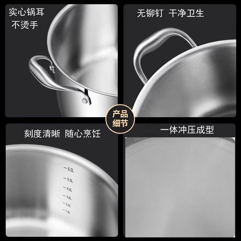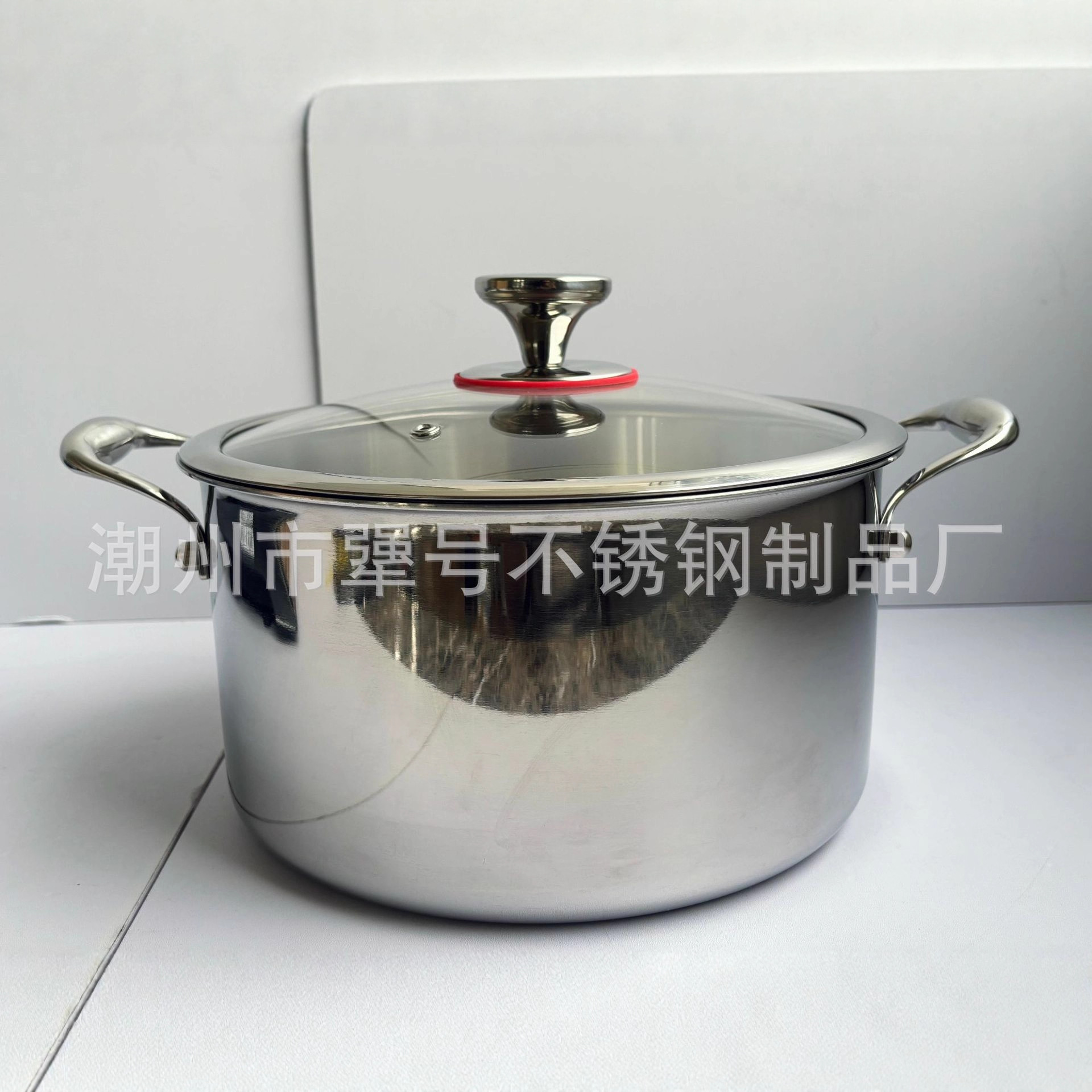 Поддерживает производство под собственной торговой маркой, трехслойная кастрюля для супа из нержавеющей стали 304 с двойной ручкой, универсальная для домашнего использования, подходит для приготовления на газовых и индукционных плитах.