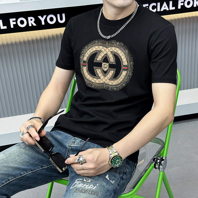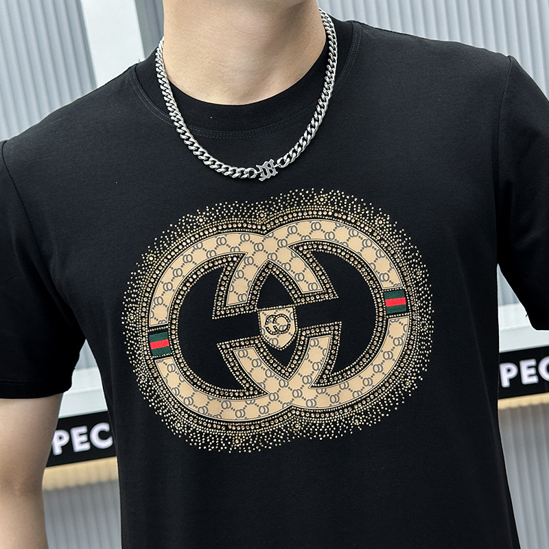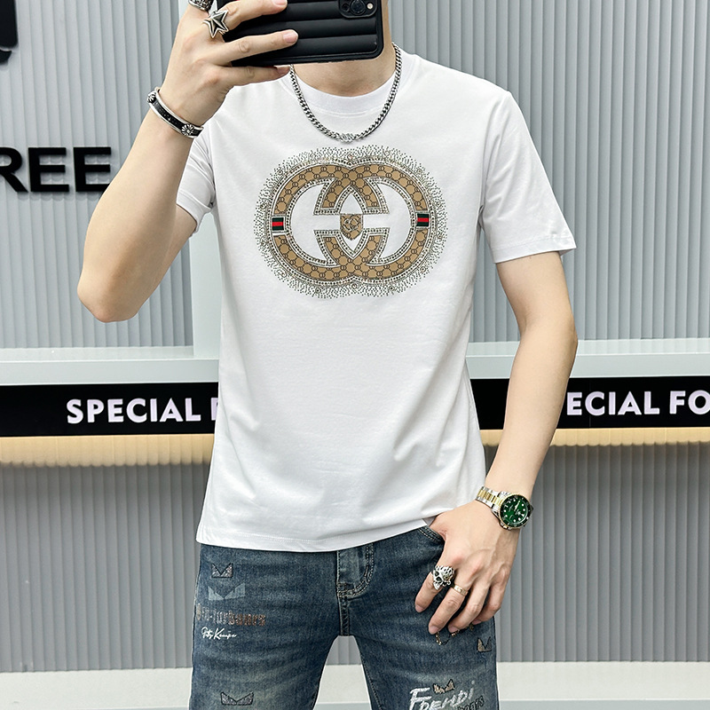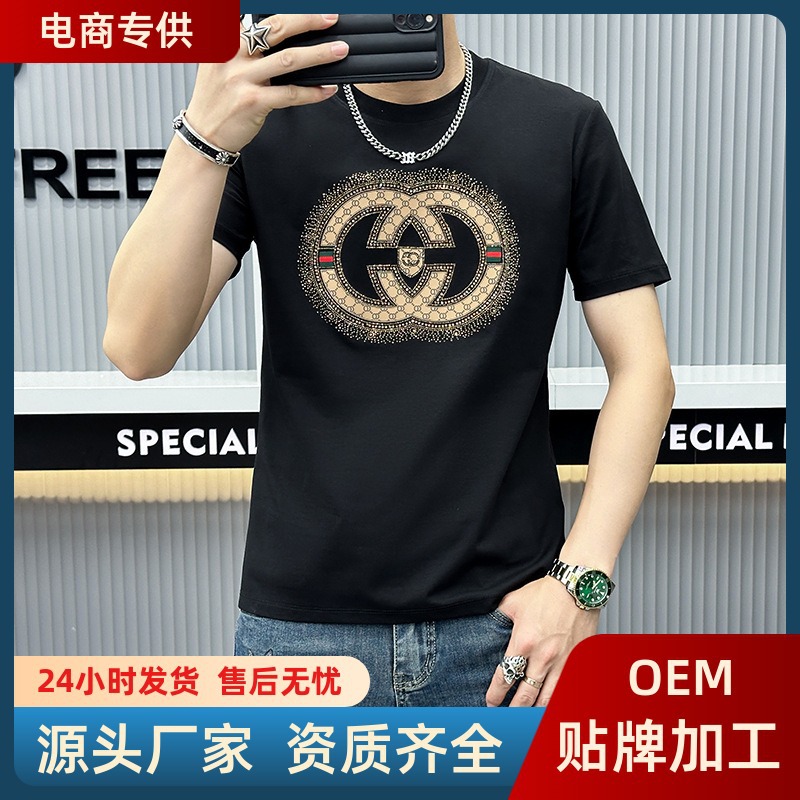 Главная страница > Европейская станция Летний новый мужской молодежный принт с горячим бриллиантом с короткими рукавами футболка с круглым вырезом модная тенденция тонкая рубашка с полурукавами