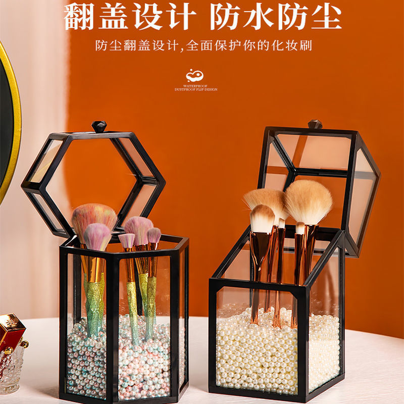 Главная страница > Косметическая кисть ведро для хранения настольного пылезащитного пера держатель кисти акриловый ящик для хранения с жемчужной кистью для теней