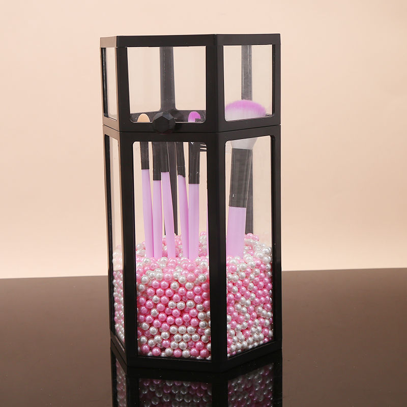 (Стакан) Черный Шестигранник для кисти с белым жемчугом↔️ Юэ Донг
