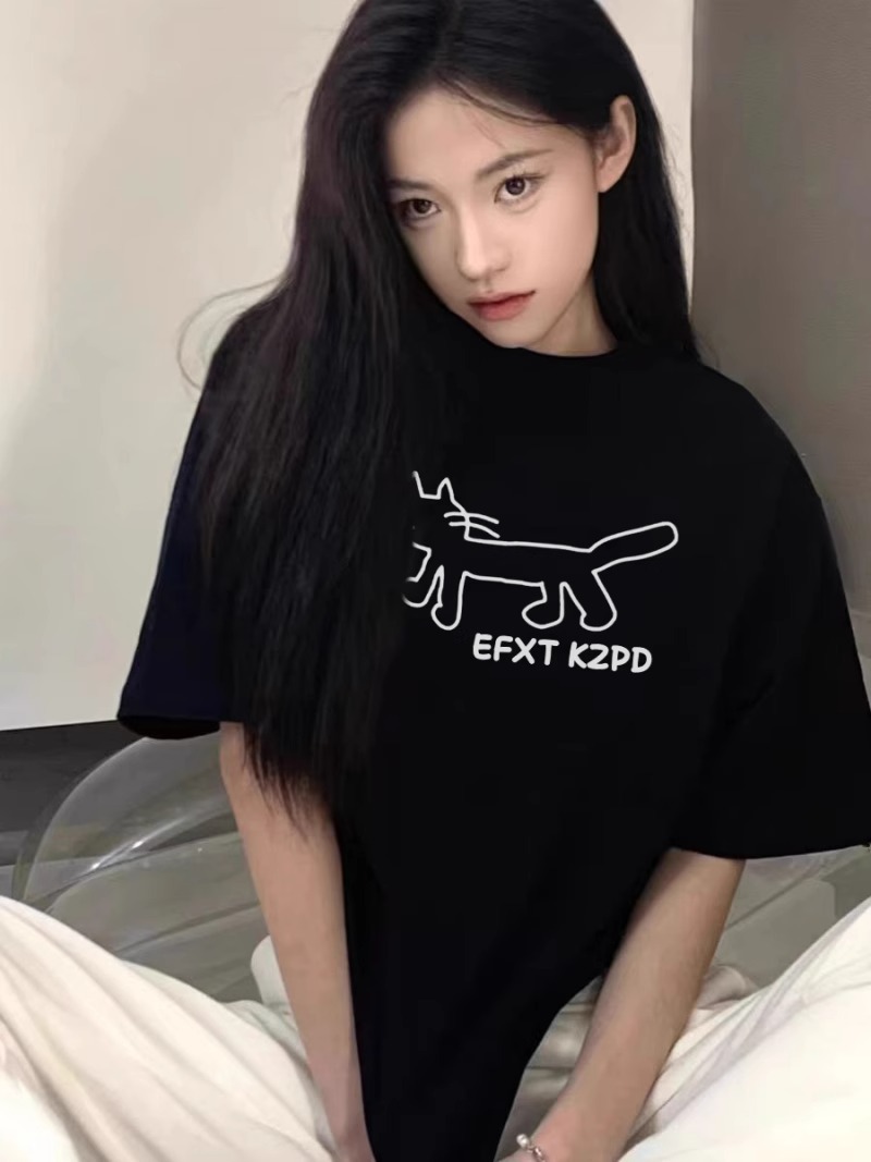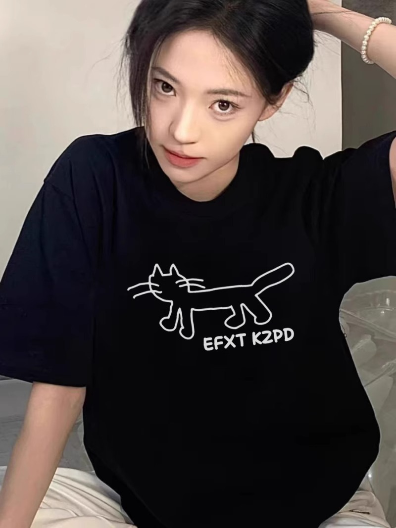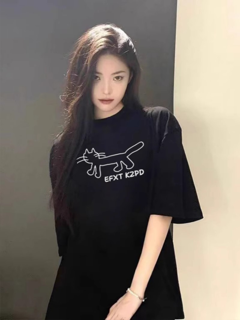 Главная страница > Женская футболка с короткими рукавами в американском стиле, лето 2025, новый популярный черный утягивающий свободный пуловер с круглым вырезом, женский топ с половиной рукавов