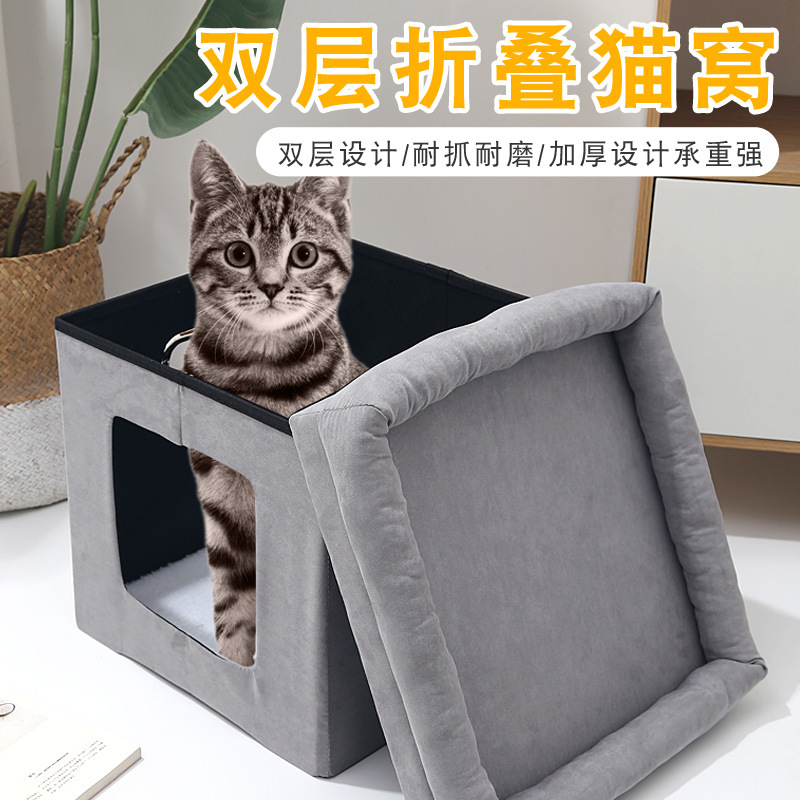 Главная страница > Двухслойная складная лежанка для кошек, войлочная вилла для кошек, подходит для всех сезонов, износостойкая и устойчивая к царапинам, популярное международное решение для уюта питомца