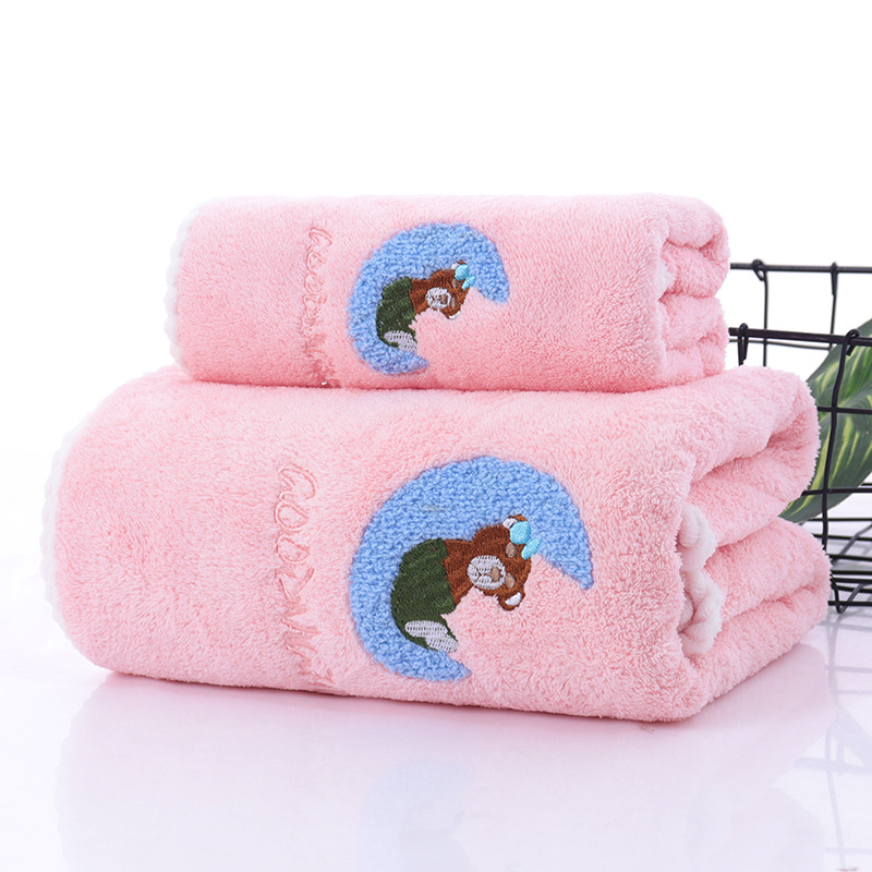 Мультфильм Банное Полотенце Новая вышитая высокая-конец висит полотенце Луна Медведь Мягкий Абсорбент Полотенце Для Лица