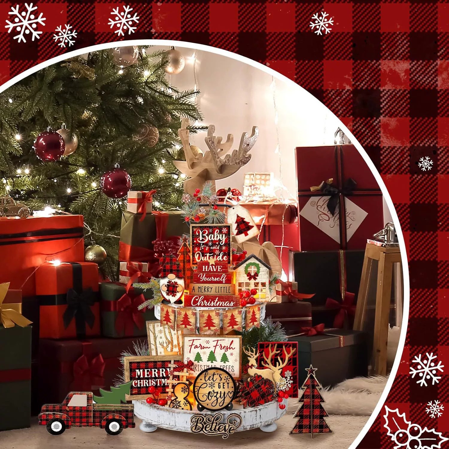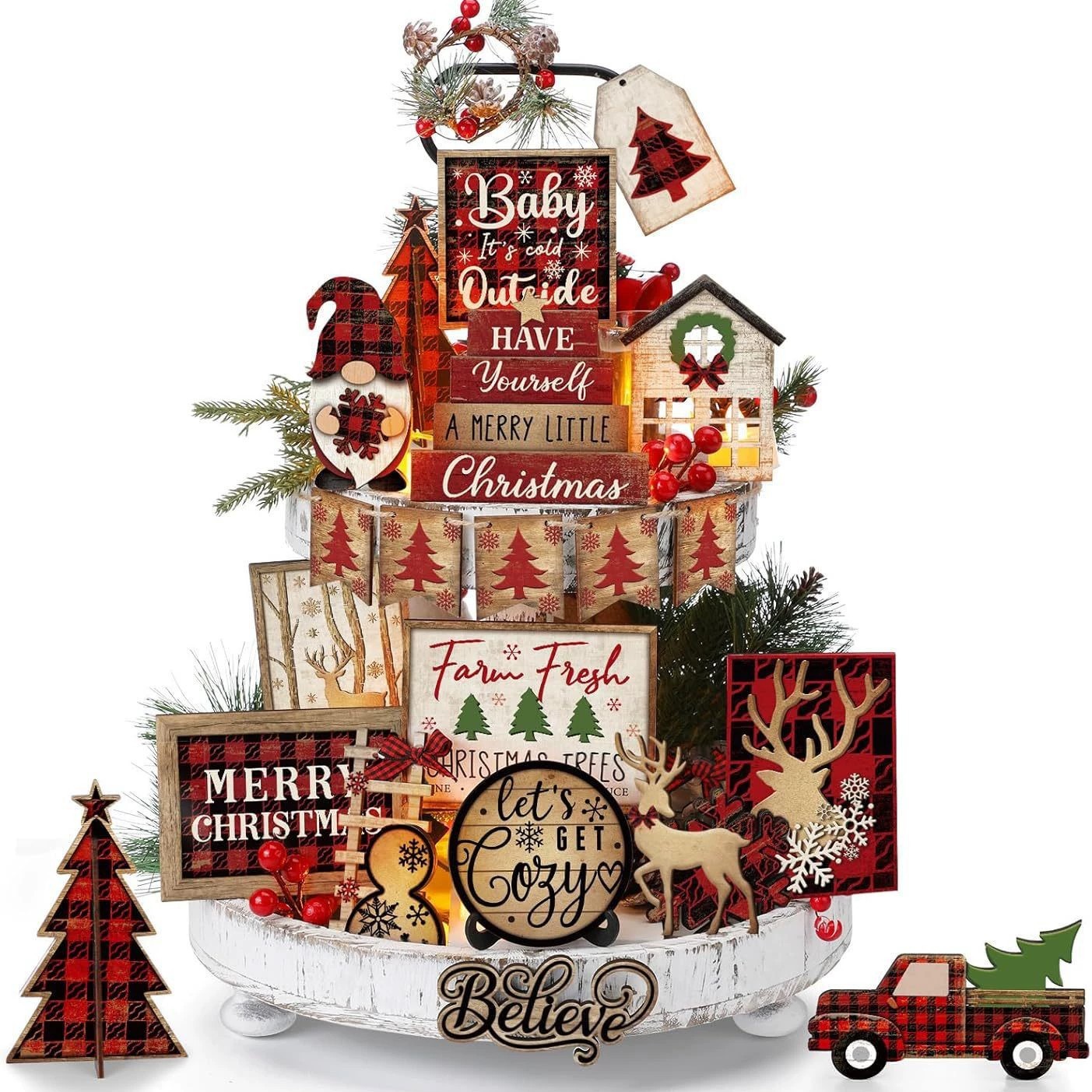 Главная страница > Рождественский многоуровневый декор подноса, деревянный деревенский стиль, рождественские украшения для дома, подставка для стола, рождественский зимний декор для фермерского дома