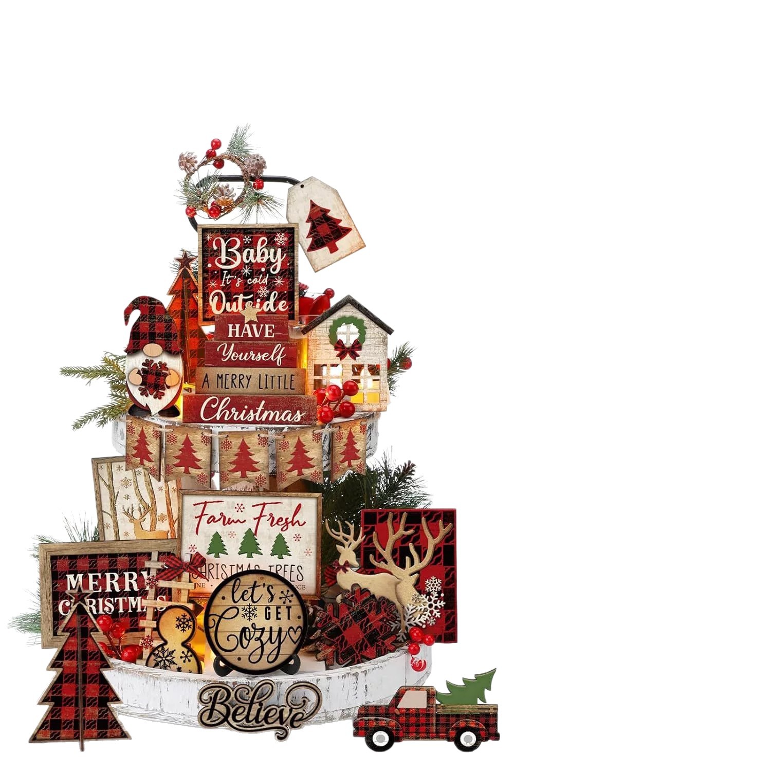 Рождественский многоуровневый декор подноса, деревянный деревенский стиль, рождественские украшения для дома, подставка для стола, рождественский зимний декор для фермерского дома