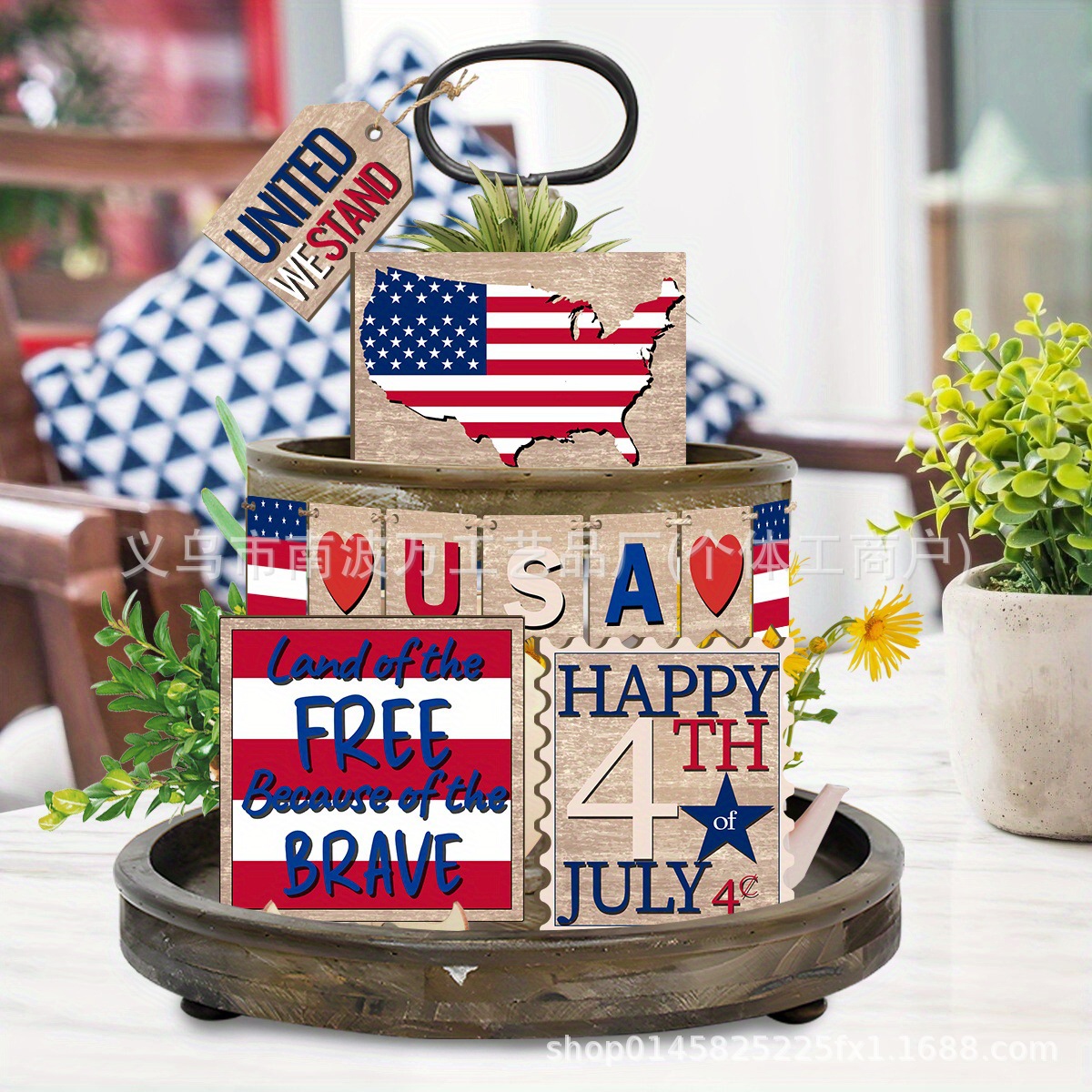 Многослойный декор подноса с сине-белым флагом в патриотическом стиле Многослойный декор подноса Декор подноса в стиле фермерского дома