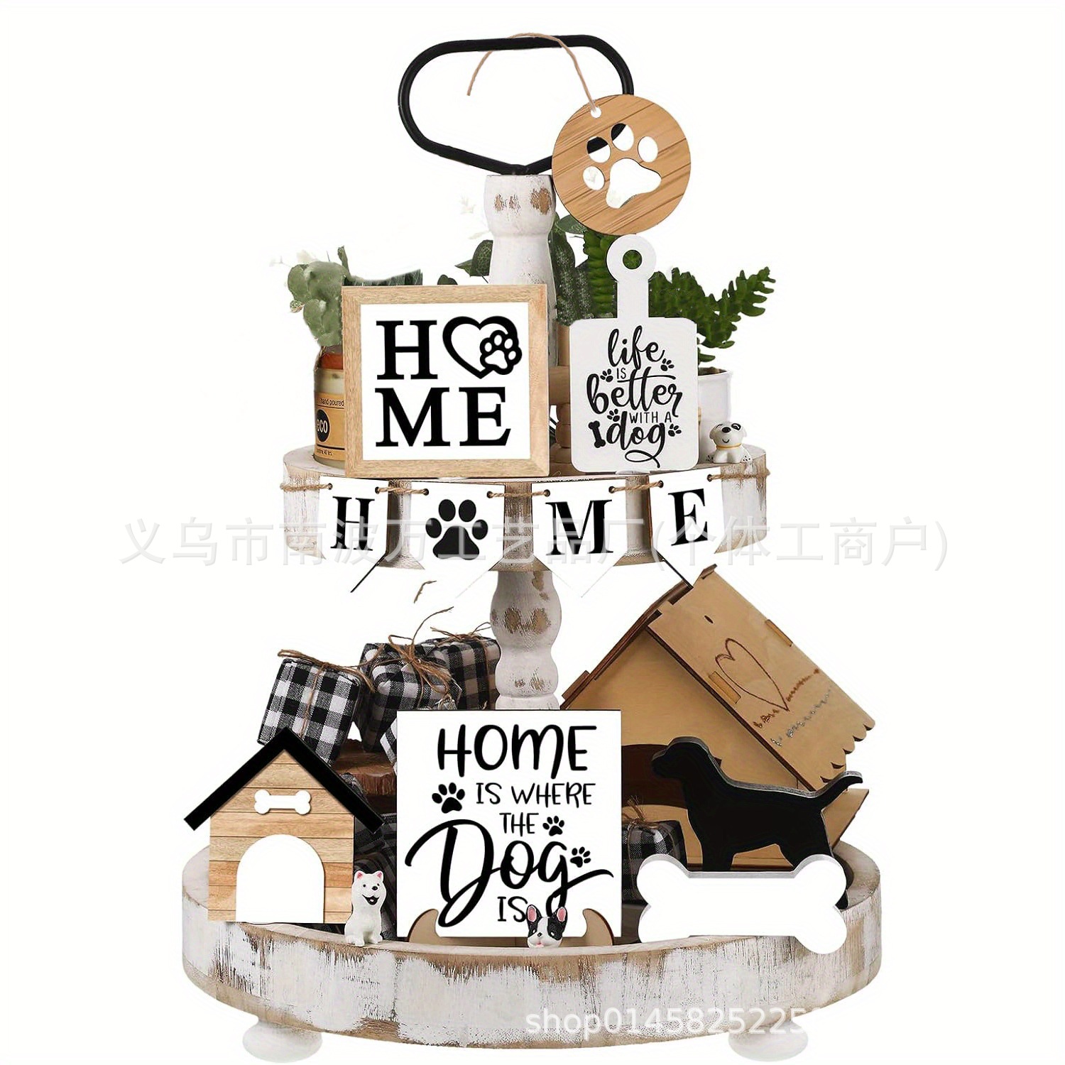 Набор многослойных тарелок для собак из 12 предметов для домашнего использования, деревянная вывеска, украшение для тарелки в виде кости в виде кости, украшение для собаки для домашней кухни.