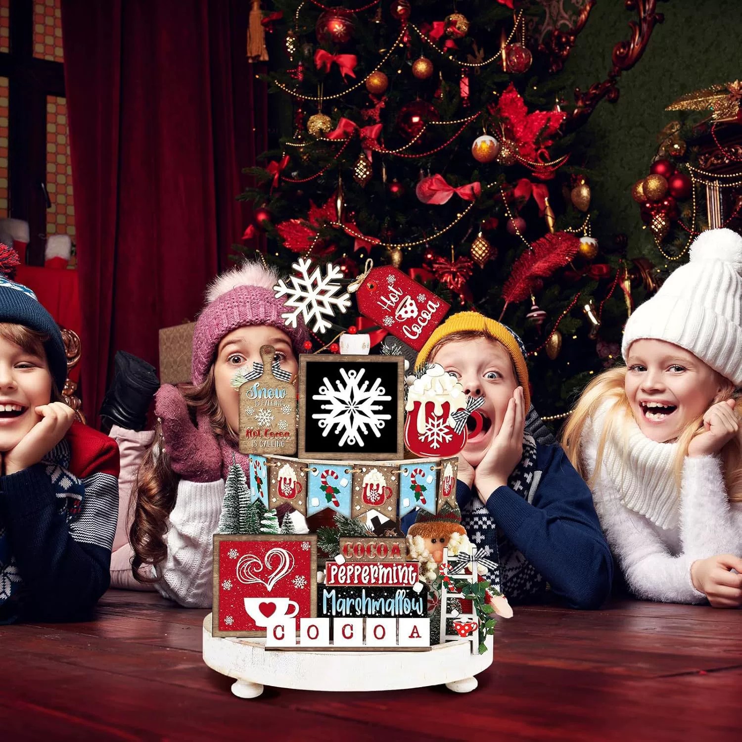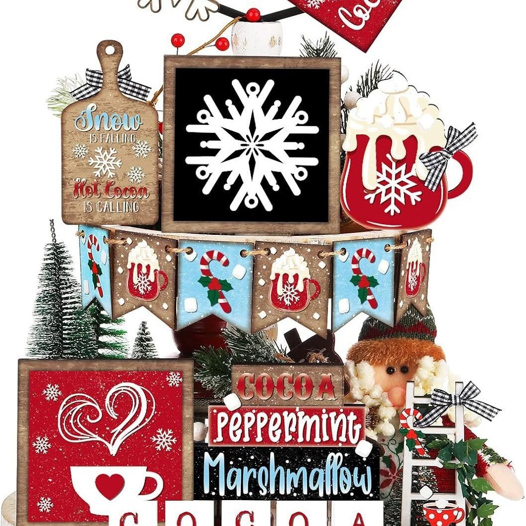 Главная страница > 14 шт., рождественский многоуровневый декор для подносов, деревенский фермерский дом, снежный кофейный блок для специй, зимний стол, знак
