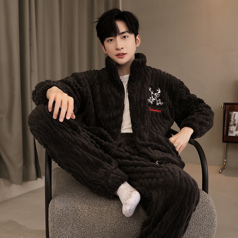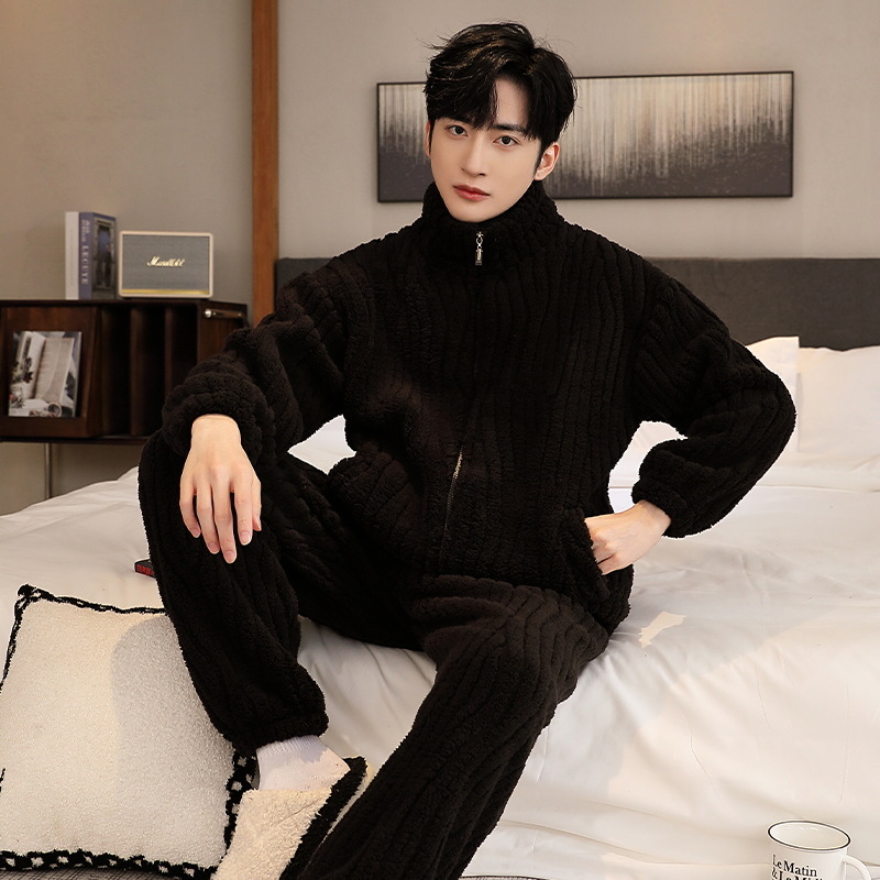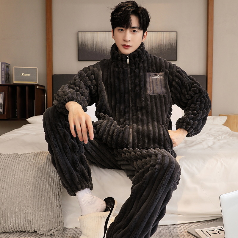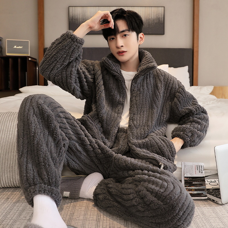 Главная страница > Зимняя пижама из кораллового флиса, Мужская утолщенная флисовая подкладка, Мужская Фланелевая верхняя одежда, повседневная домашняя одежда, мужской костюм