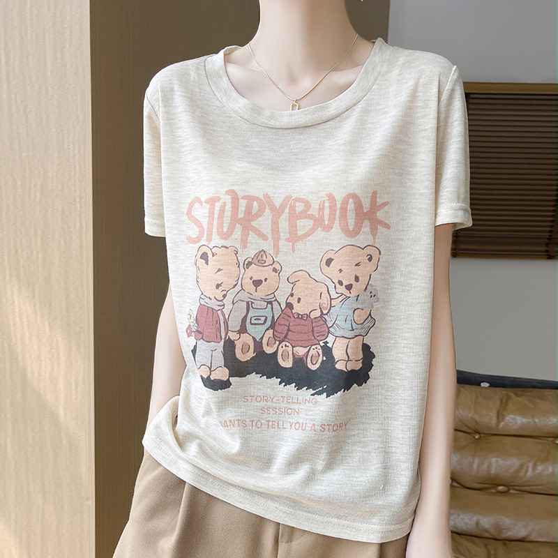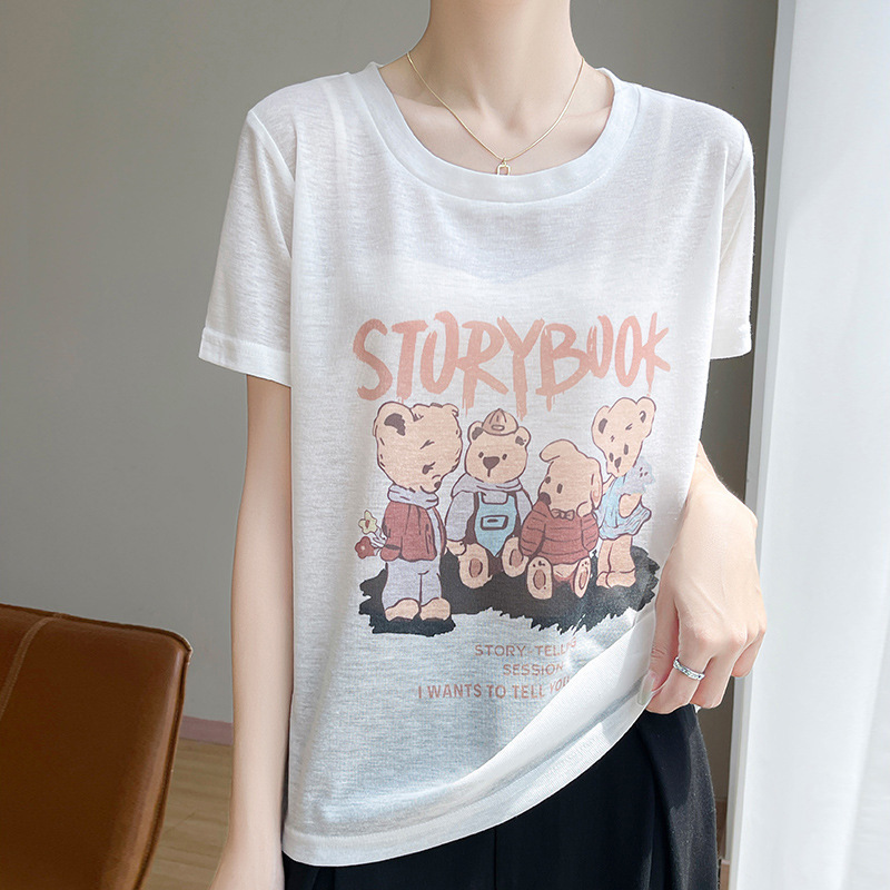 Женская футболка с принтом в стиле медведя, летняя мода, тонкий дизайн, женский топ с короткими рукавами и круглым вырезом с рисунком