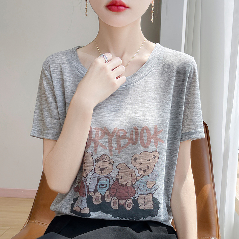 Главная страница > Женская футболка с принтом в стиле медведя, летняя мода, тонкий дизайн, женский топ с короткими рукавами и круглым вырезом с рисунком