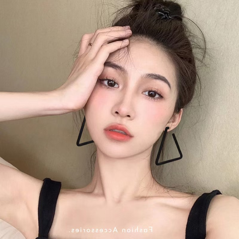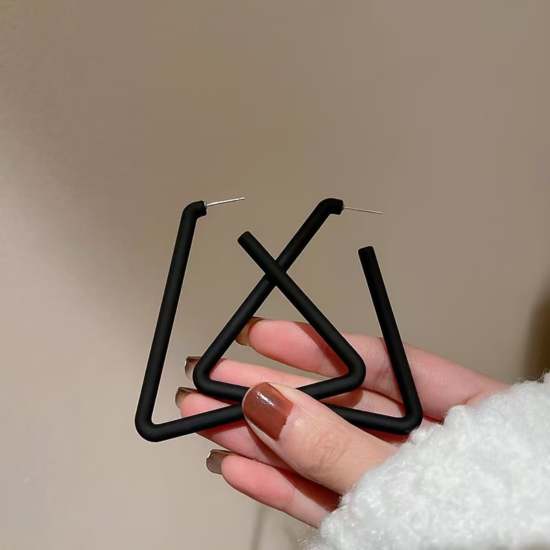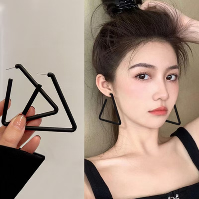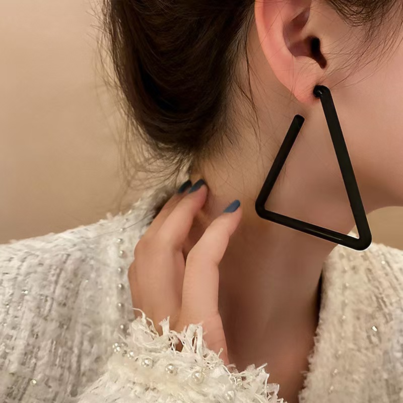 Черные треугольные геометрические серьги, простые и высококачественные серьги в европейском и американском стиле для женщин, новые модные серьги нишевого дизайна 2024 года.