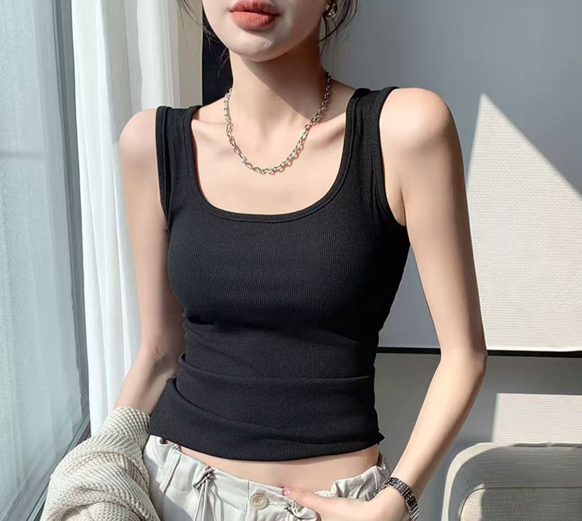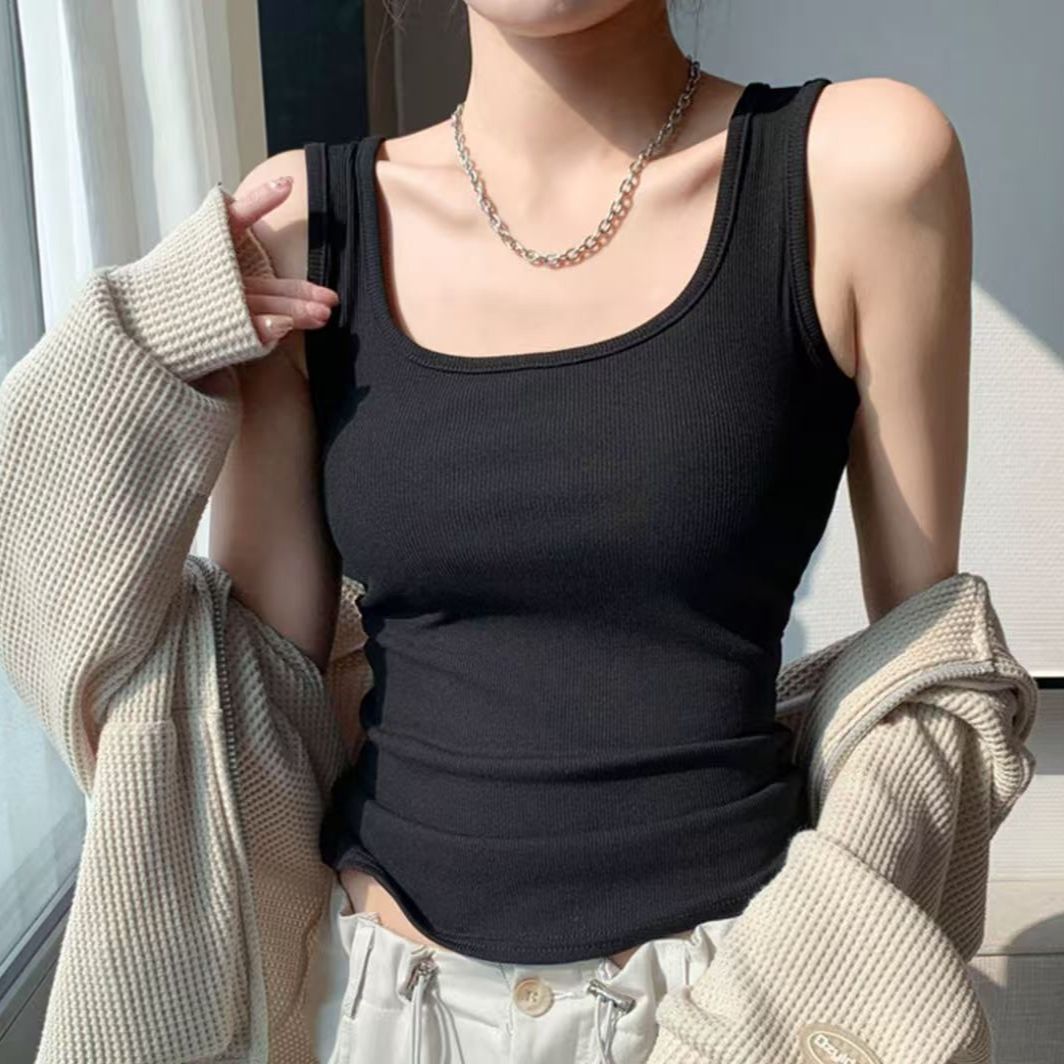 Главная страница > Прямые продажи с фабрики, женская летняя тонкая майка с квадратным вырезом, внутренняя и верхняя одежда, облегающая, без рукавов, с защитой от воздействия окружающей среды
