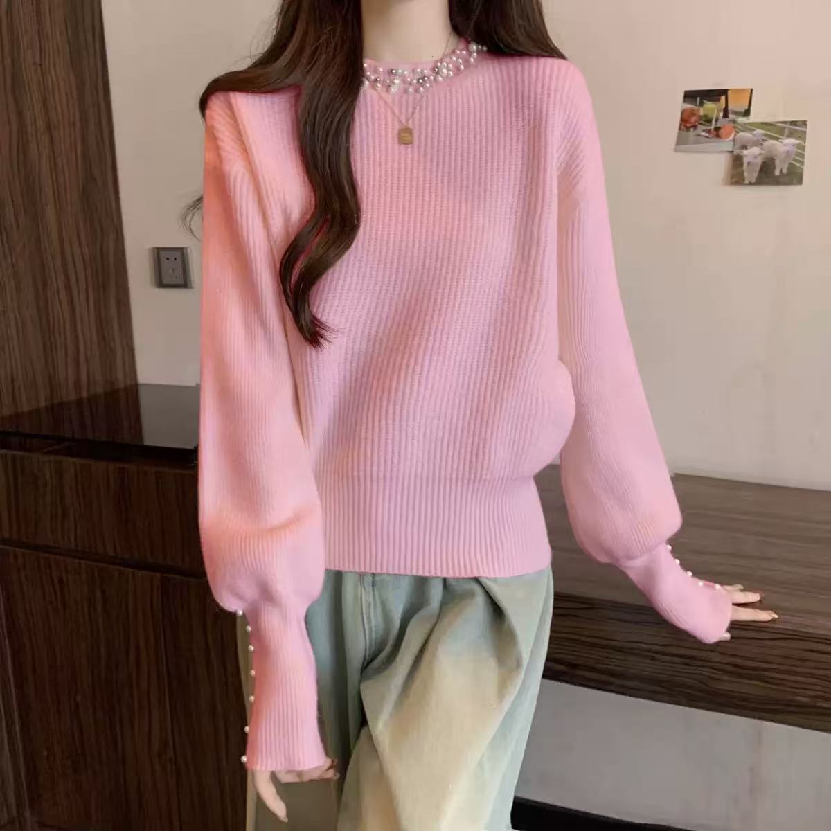 Главная страница > Новый стиль осень-зима 2025: Модный женский свободный универсальный свитер с круглым вырезом, расшитый бисером, утепленный, облегающий, толстый, для ношения как базовый слой