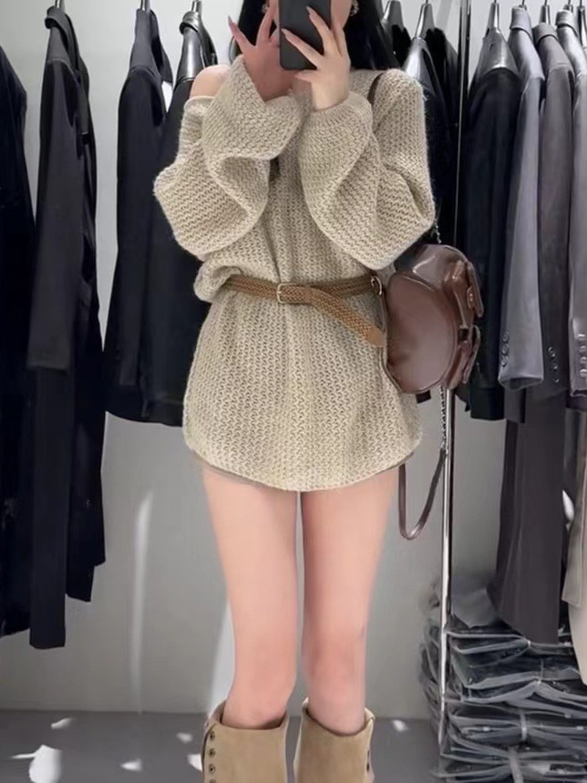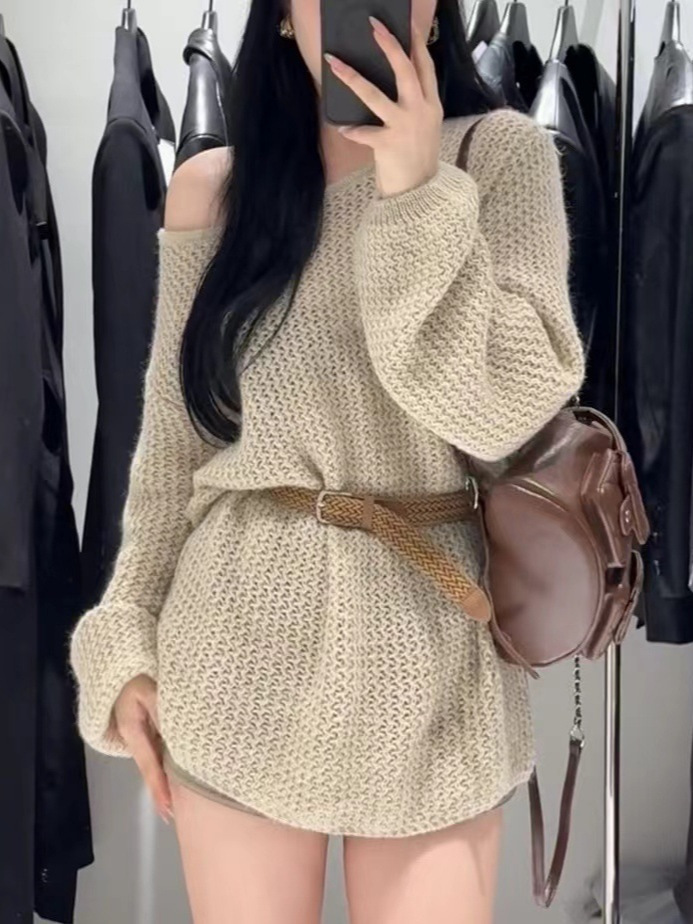 Главная страница > Женский трикотажный топ с вырезами во французском стиле, осень-зима 2025, новый свободный повседневный топ средней длины, простой и универсальный.