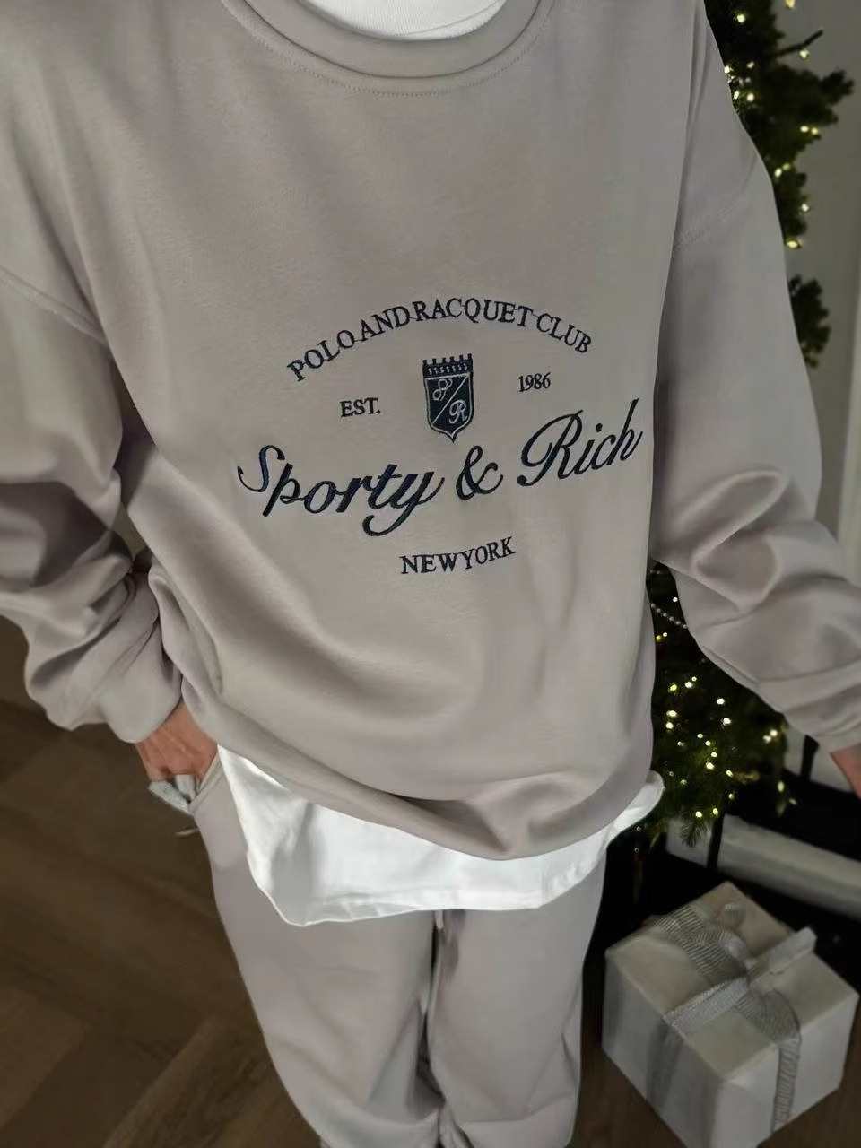 Американский ретро алфавит вышитый свитер 2025 новый пуловер топ удобный дикий свободный ленивый пуловер женский