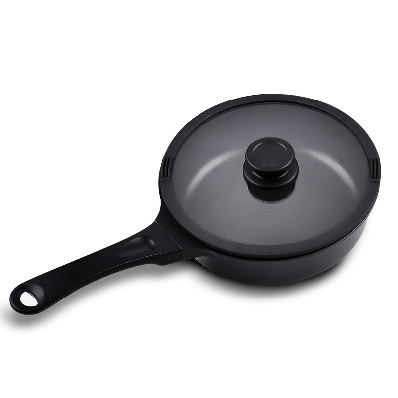 26cm черный модернизированный глубокая сковорода с силиконовой крышкой, чтобы отправить силиконовую лопату