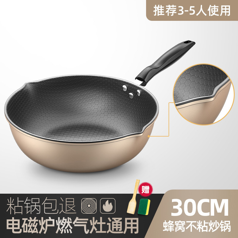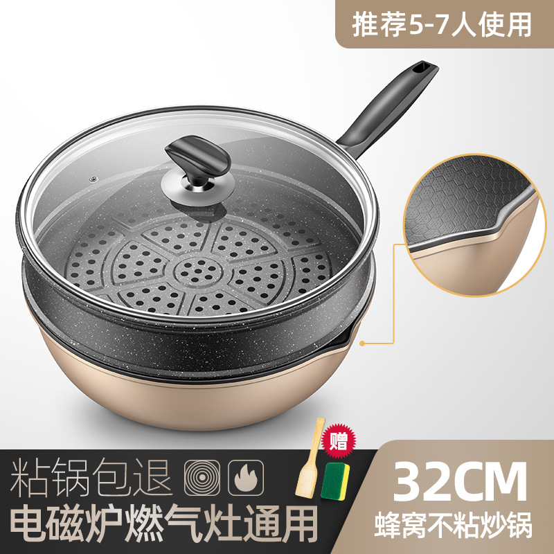 Главная страница > Новая многофункциональная железная кастрюля с антипригарным узором в виде сот, бытовая кастрюля для приготовления пищи, двойная направляющая wok, универсальная плита, сковорода
